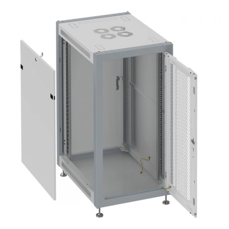 600x800x1780 mm ШхГхВ , передняя дверь перфорированная, задняя дверь сплошная металлическая, поворотная ручка с замком, цвет серый RAL 7035.Разобранный.