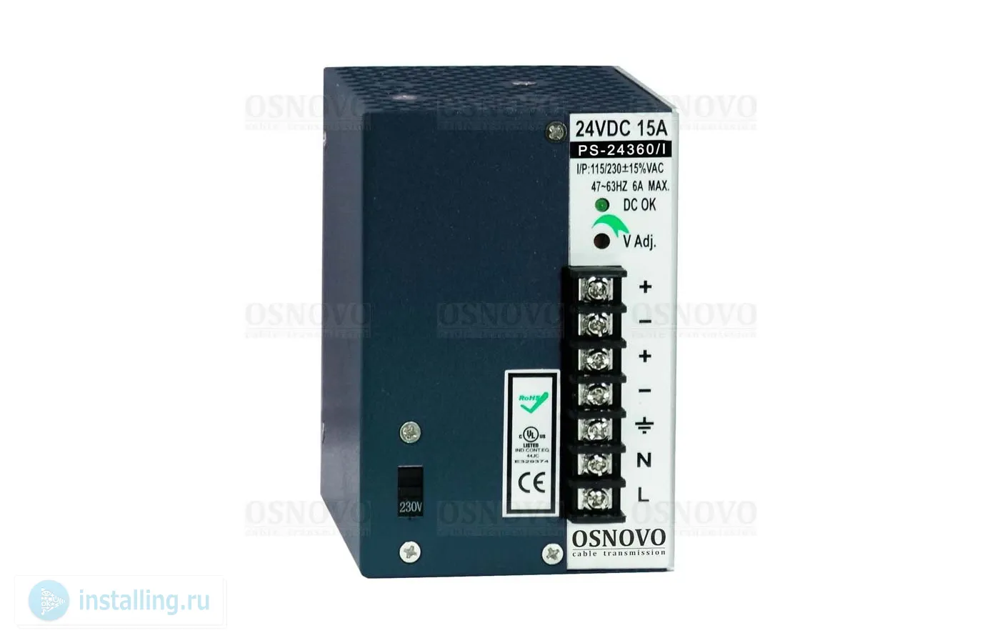 Предназначен для электропитания промышленных устройств стабилизщированным напряжением 24 В.