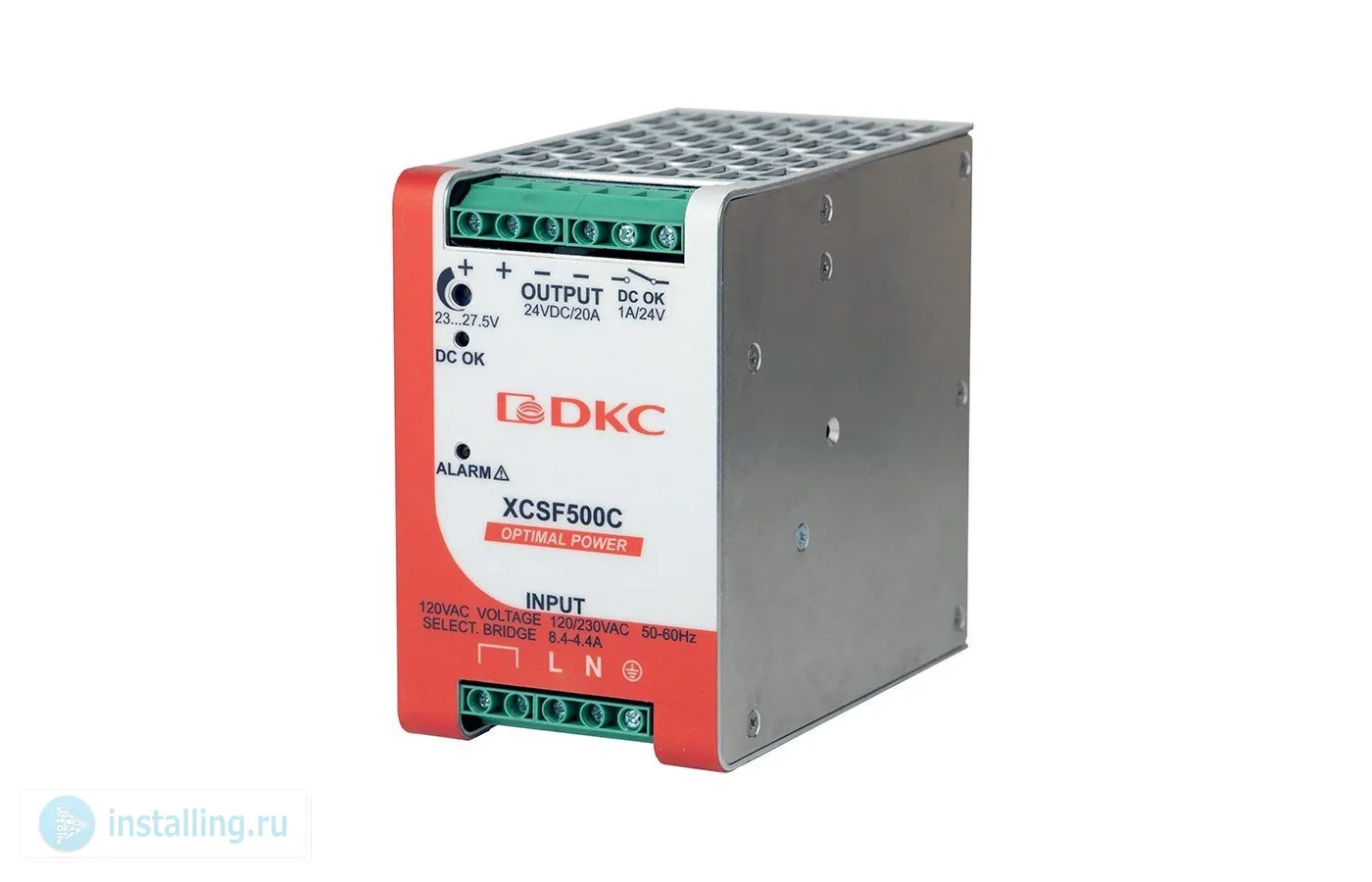 С креплением на DIN рейку; U-вх.90...264 В 50 Гц , U-вх. =100...370 В, I-потр. 4.1 А; U-вых.пост. 24 ± 1 регул. 24...28 В , I-вых.пост. ном. 20 А; свет.индикатор DC OK/ALARM, выход СК Авария 24В/1А; IP20, t-раб. -20...+60°C, габ.размеры 80х139х127 мм. Встроенный ORing диод для параллельного подключения с резервированием