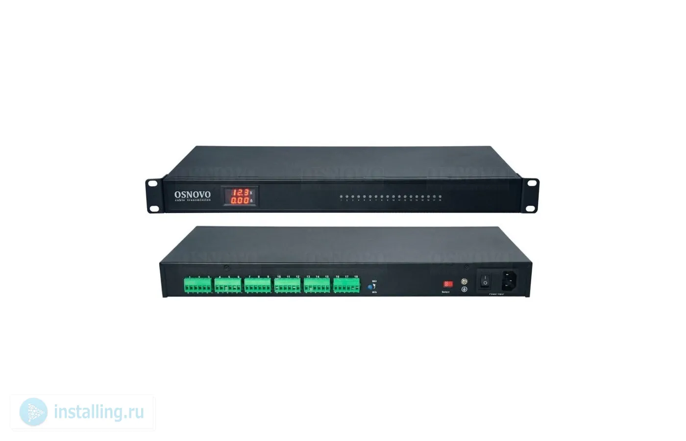Блок питания на 18 каналов, для монтажа в 19" стойку 1U, DC 12V, 1,11А на каналмакс ток до 2А, при одновременном использовании не более 10 каналов, суммарно до 20А. Общая выходная мощность до 240Вт. Допускается кратковременная нагрузка на канал 4А5 сек. Функция регулировки напряжения на выходе в пределах от 10 до 14В с помощью удобного подстроечного регулятора. Активное охлаждение с помощью 2х вентиляторов на корпусе сбоку. Защита от КЗ, перегрузок по току и напряжению. LED индикаторы подключенной нагрузки. Дополнительный LCD дисплей для отображения параметров. Переключатель входного напряжения 115/230В. Крепеж для стойки, а также резиновые ножки для настольного использования в комплекте. -20…+40°С. 440х45х210мм.