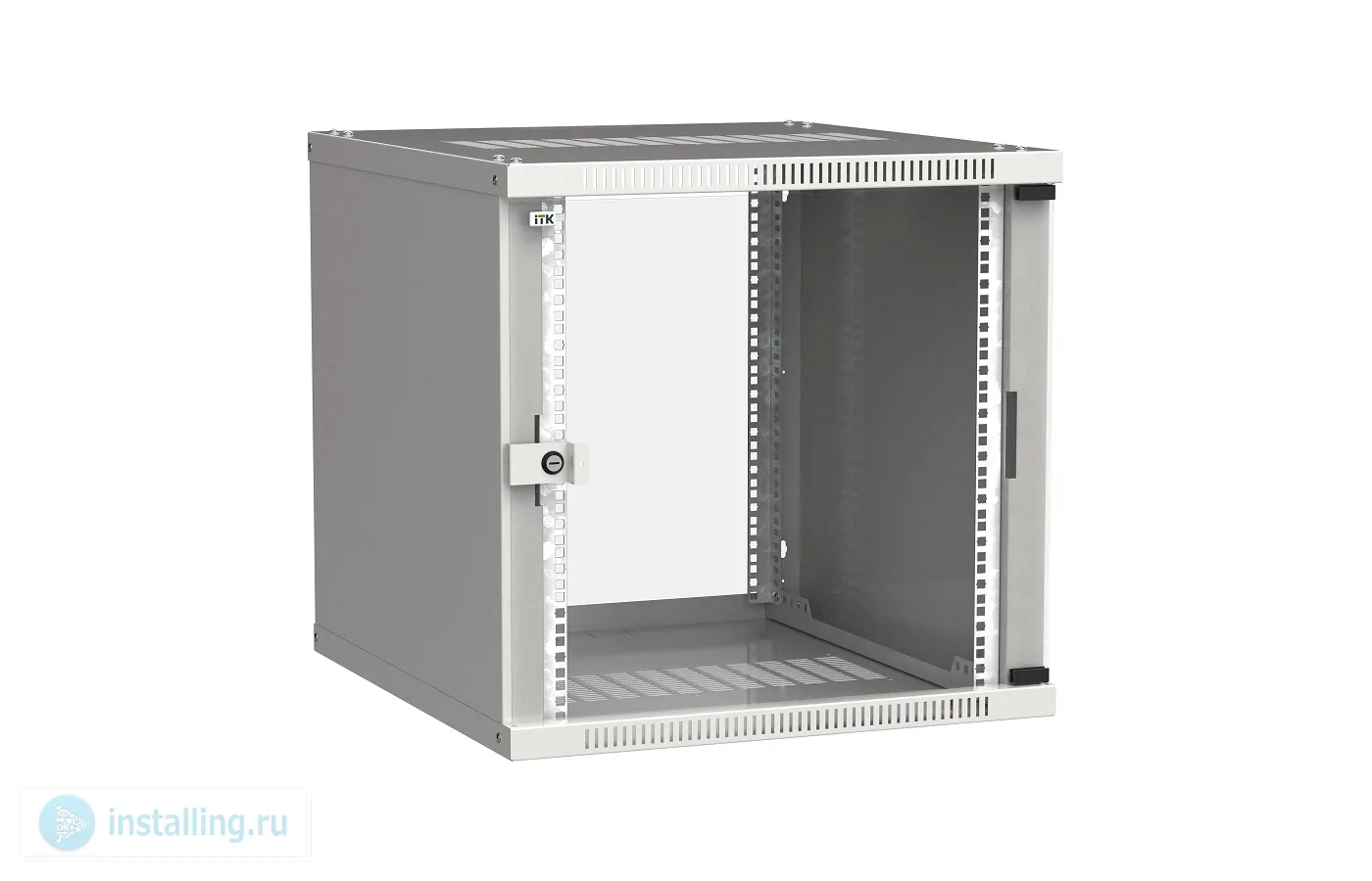 Дверь стекло, 9U, 450х600х450 мм ВхШхГ , полезная глубина 400 мм, распределенная нагрузка: 50 кг, цвет серый.