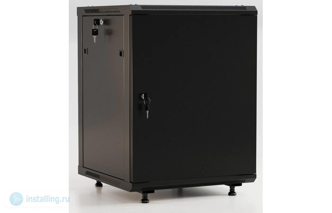 22U, дверь цельнометаллическая, ручка с замком, допустимая статическая нагрузка 60 кг, с возможностью установки на ножки в комплекте, полезная глубина 370 мм, цвет черный, разобранный, 1086x600х450 мм.