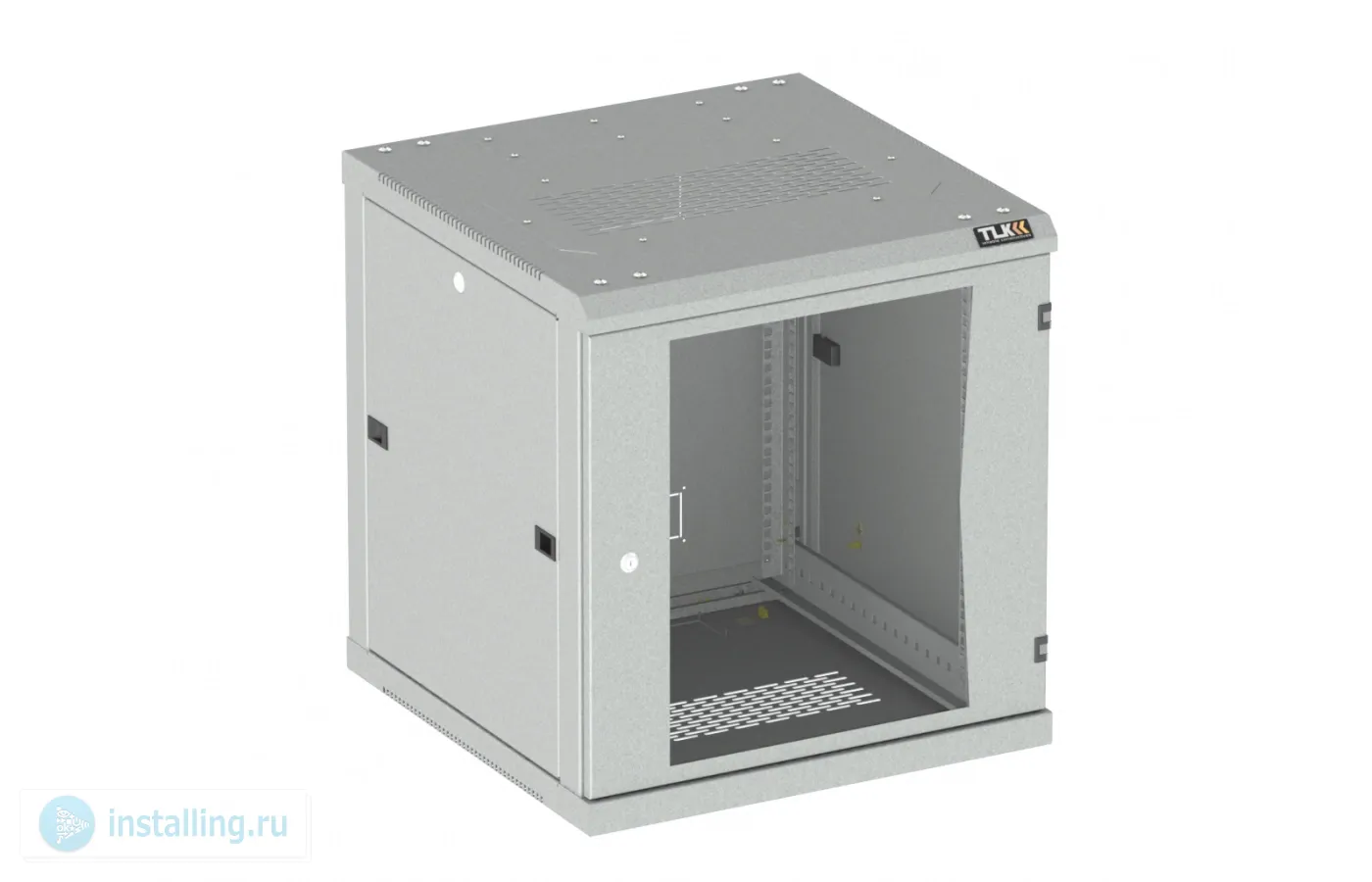 Шкаф телекоммуникационный 19, настенный, дверь стекло, 12U, 636х600х450мм, 2 пары монтажных направляющих, серый.