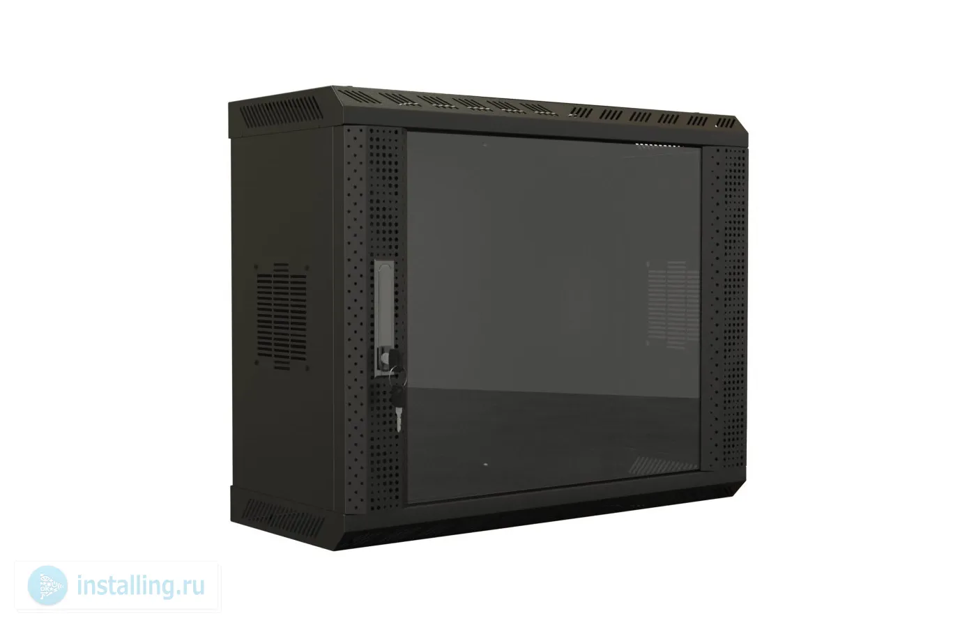 22U, дверь стекло с перфорацией по бокам, ручка с замком, допустимая статическая нагрузка 60 кг, полезная глубина 170 мм, цвет черный, собранный, 1086x600х250 мм.