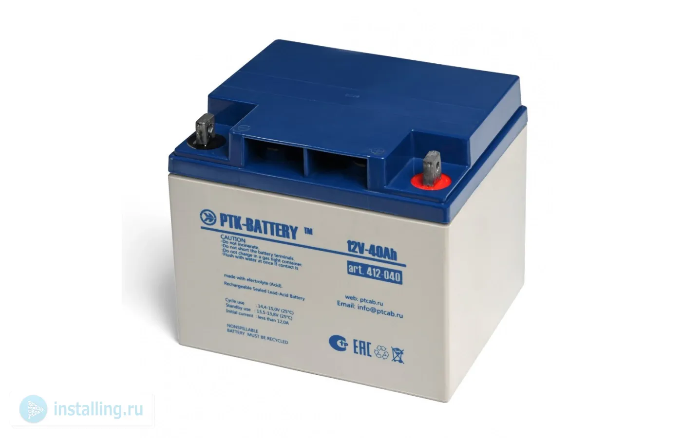 12В/40Ач, клеммы B1 (под болт), 198х166х171 мм, 13.0 кг