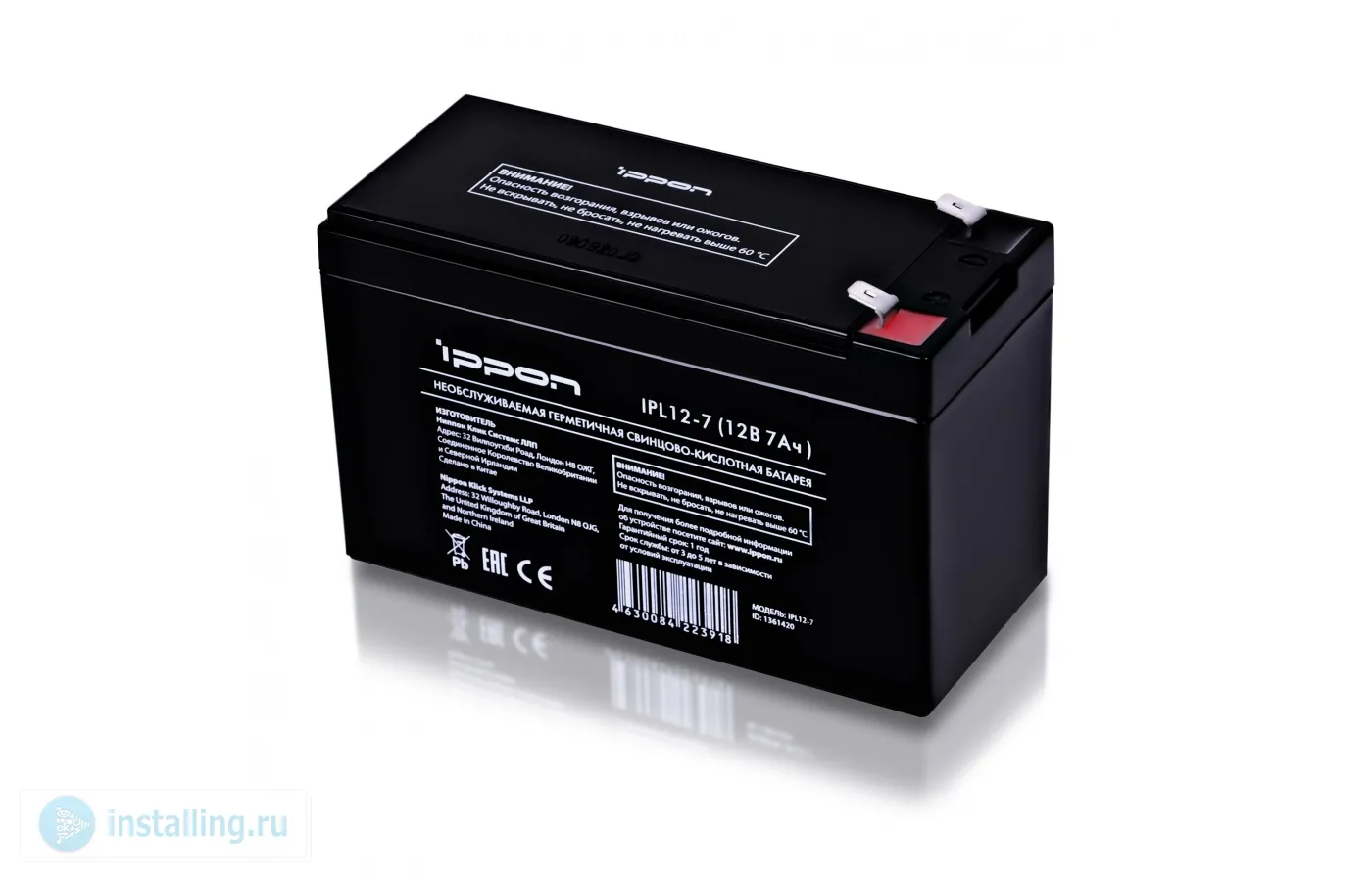 Батарея для ИБП необслуживаемая герметичная свинцово-кислотная аккумуляторная батарея, 12В, 7Ач, 93x65x151 мм.