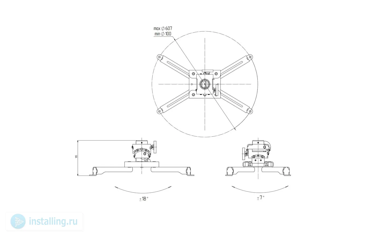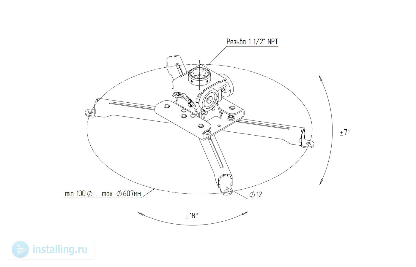 Наклон (вперед / назад): ±18°. Наклон (в стороны): ±7°. Вращение: 360°. Нагрузка до 75 кг.