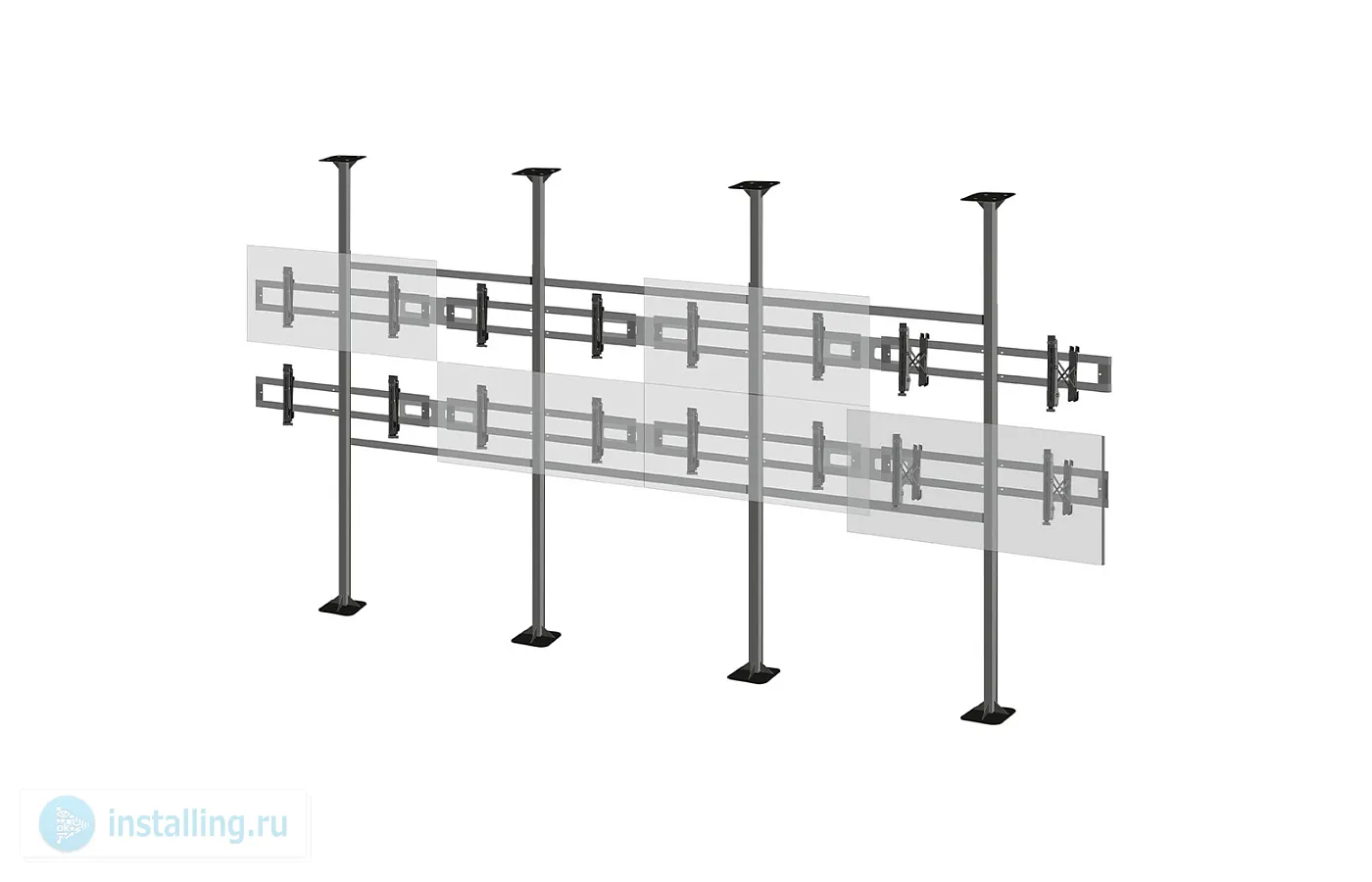С системой выдвижения для видеостен 46-55 max VESA 600x400, с точками креплениями пол-стена, пол-потолок, потолок, нагрузка на один модуль 50 кг, черн.