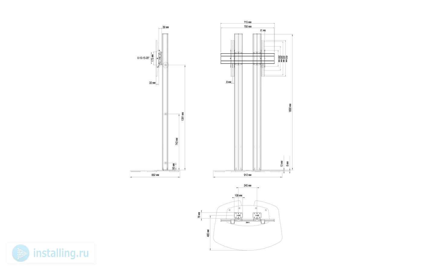 Для дисплея более 55''. Альбомная ориентация. Стандарт VESA 100x100...600x400 мм. Наклон: 0, 10, 15, 20°. Длина штанги: 1800 мм. Скрытый кабель-канал CIS®. Макс. нагрузка: 80 кг. Цвет серебристый.