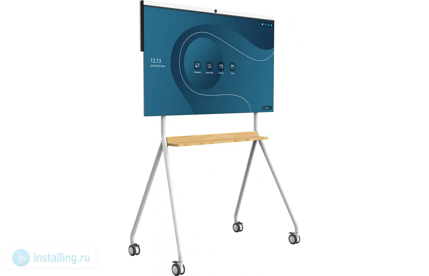 Мобильная стойка с металлической полкой «под дерево» для интерактивного дисплея INNEX Meeting Hub CM55. Позволяет легко перемещать панель Innex CM55 с места на место. Выполнена из качественного металла, окрашенного в белый цвет.