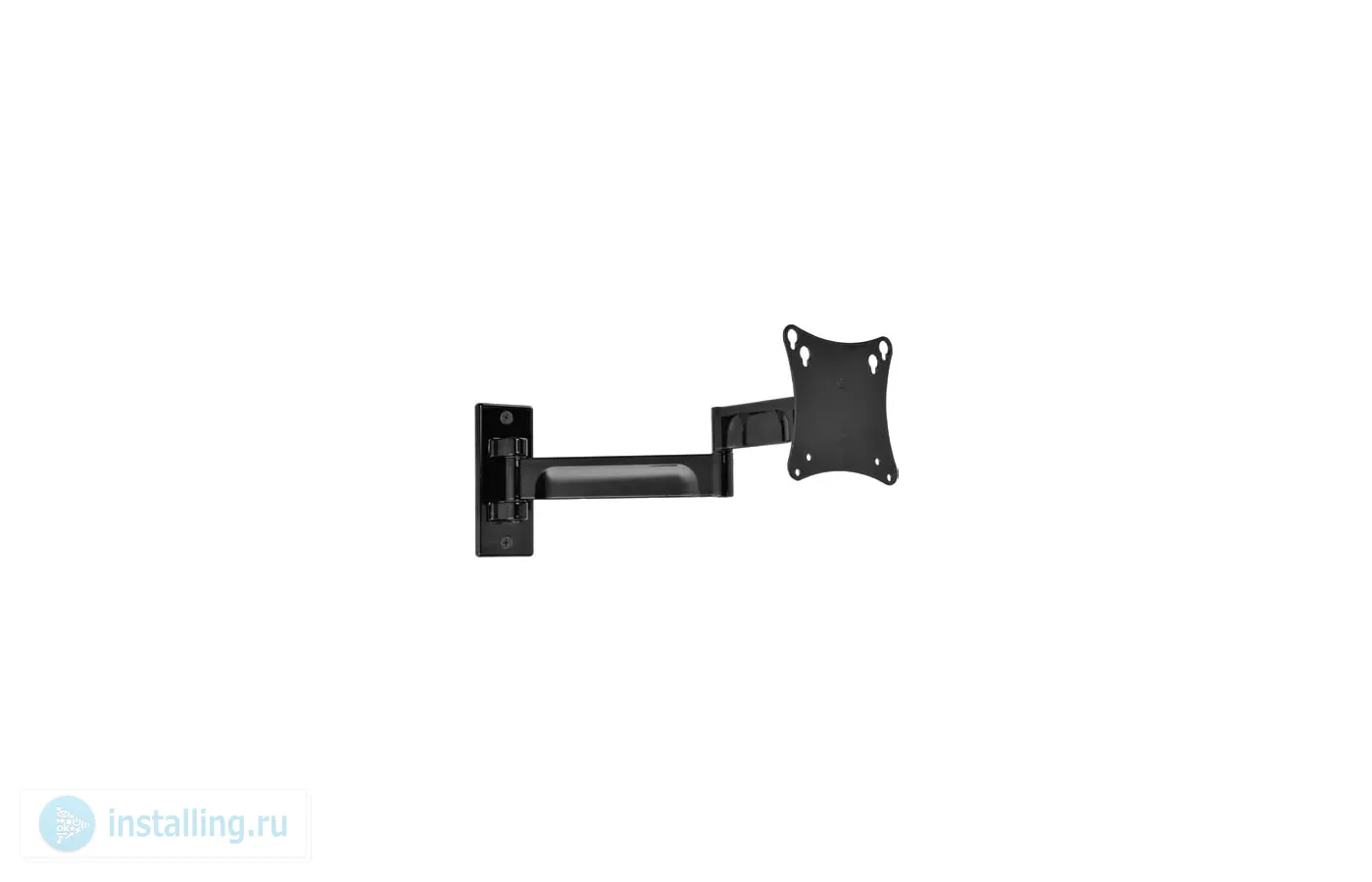 - Складной двухплечный рычаг позволяет одним движением отодвинуть дисплей от стены на расстояние до 377 мм и повернуть его в нужную сторону относительно настенного крепления на 180° для выбора идеального расположения и оптимального угла просмотра