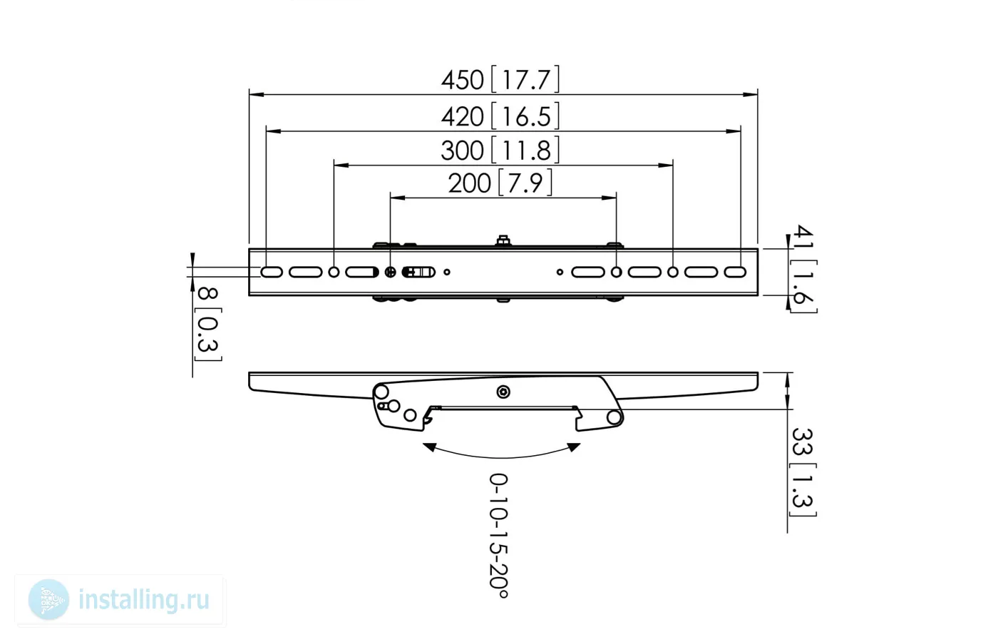 PFS 3304 – направляющие для монтажа дисплея. Используются с крепежными планками PFB 34xx модульной крепежной системы Connect-it. Пошаговая регулировка наклона: 0, 10, 15, 20°. Высота направляющих: 450 мм. Вертикальное расстояние между монтажными отверстиями: 100–420 мм. Максимальная нагрузка: 80 кг. Цвет черный.