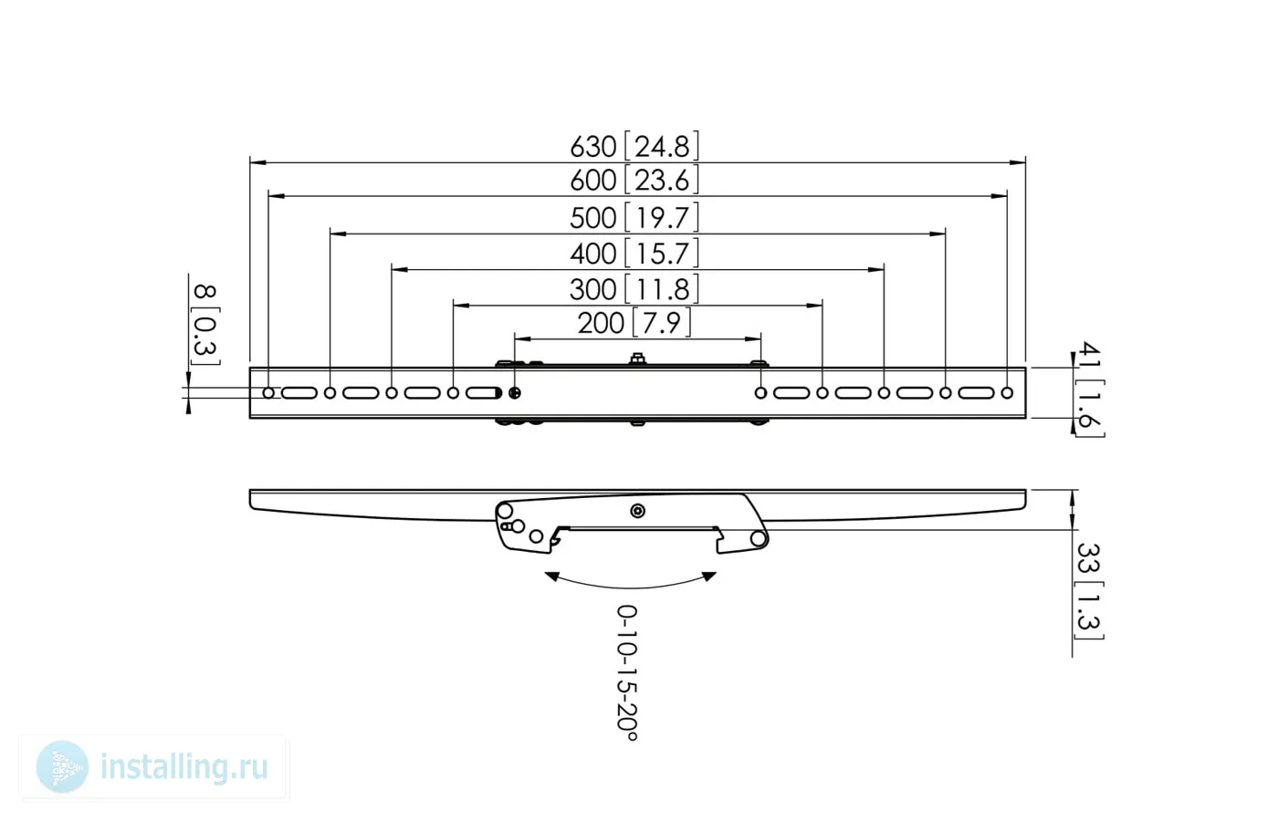 PFS 3306 – направляющие для монтажа дисплея. Используются с крепежными планками PFB 34xx модульной крепежной системы Connect-it. Пошаговая регулировка наклона: 0, 10, 15, 20°. Высота направляющих: 630 мм. Вертикальное расстояние между монтажными отверстиями: 100–600 мм. Максимальная нагрузка: 80 кг. Цвет черный.