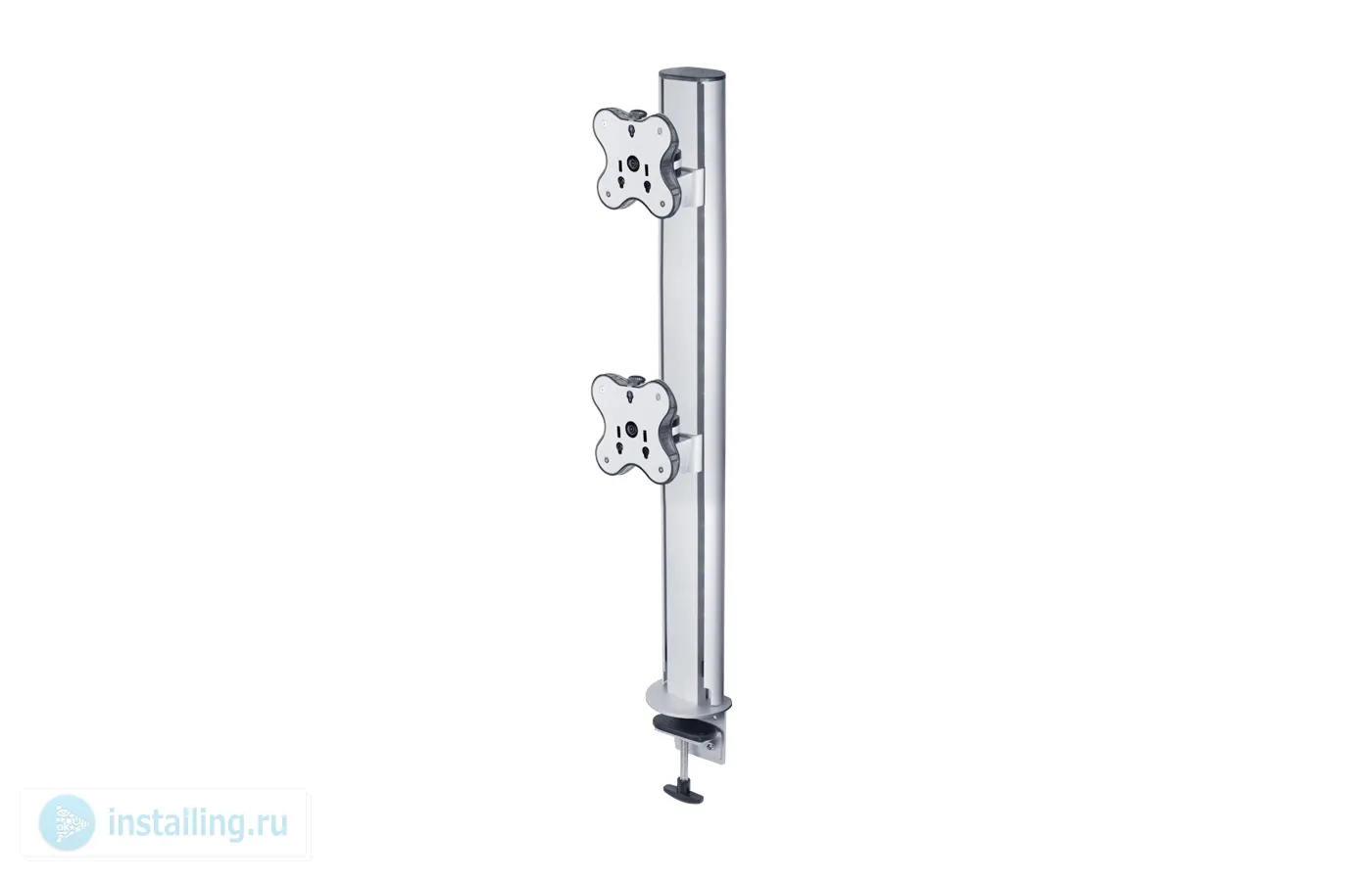 BTFS-02VC – настольное шарнирное крепление для 2 мониторов диагональю до 30’’. Мониторы располагаются друг над другом. Регулировка высоты в пределах 800 мм. Стандарт VESA 75х75, 100х100 мм. Вращение стойки: 360°. Наклон монитора: ±30°. Скрытый кабель-канал в боковых частях вертикальной направляющей. Монтаж к столу: зажим типа C. Материал: алюминий, пластиковая декоративная отделка. Максимальная нагрузка: 24 кг (по 12 кг на VESA).