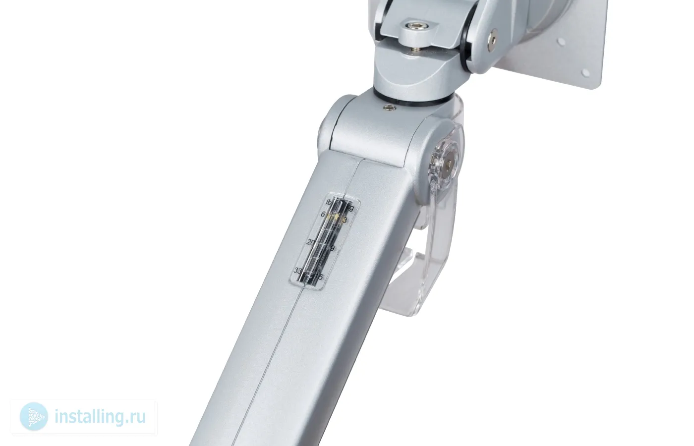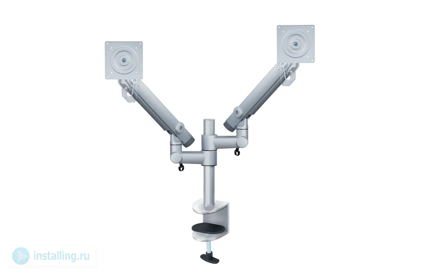 DCS-201DC – настольное шарнирное крепление для 2 мониторов диагональю до 27 с газопружинным амортизатором. Регулировка высоты в пределах 280 мм. Стандарт VESA 75х75, 100х100 мм. Количество точек поворота: 3. Количество колен: 2. Вращение: 360°. Наклон: ±45°. Поворот: 360°. Монтаж к столу: зажим типа C. Материал: алюминий, пластиковая декоративная отделка. Максимальная нагрузка: 20 кг.