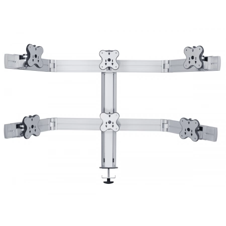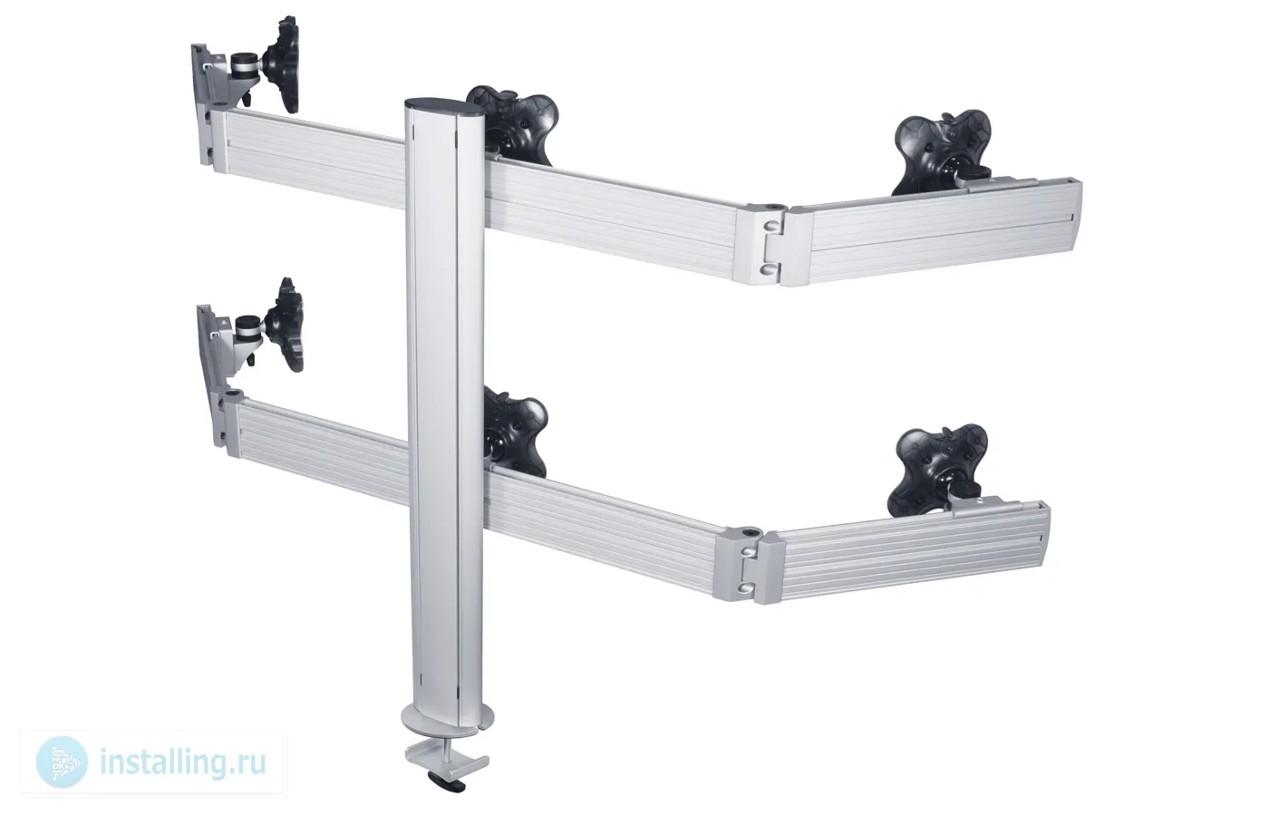 RSS-600WG – настольное крепление для установки 6 мониторов диагональю до 24. Конфигурация: 2х3. Поворотные боковые планки. Регулировка высоты в пределах 800 мм. Стандарт VESA 75х75, 100х100 мм. Вращение: 360°. Наклон: ±30°. Скрытый кабель-канал в боковых частях вертикальной направляющей. Монтаж к столу: струбцина типа G. Материал: алюминий, пластиковая декоративная отделка. Максимальная нагрузка: 72 кг.