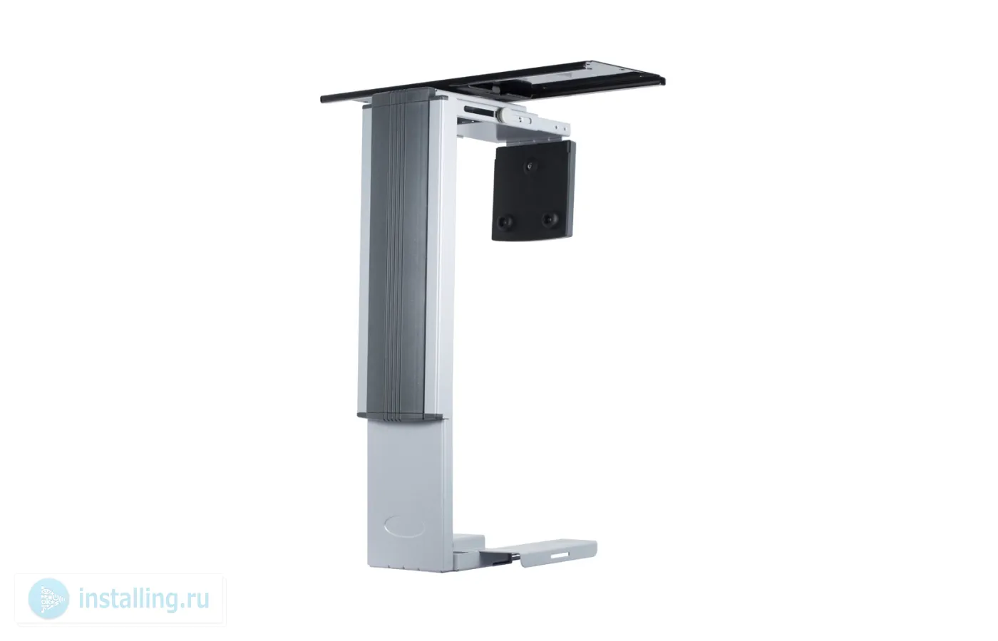 PCH-10 – выдвижная подставка для системного блока под стол. Вращение: 360°. Комплектуется декоративной пластиковой крышкой. Полезное пространство регулируется в пределах 305–530 мм по высоте и 135–240 мм по ширине. Материал: металл, пластиковая декоративная отделка. Максимальная нагрузка: 25 кг.