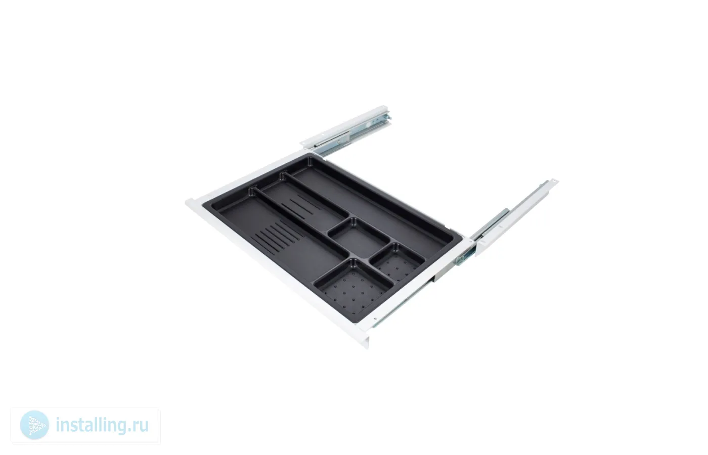 PTS4324W – средний выдвижной ящик-органайзер для канцелярских принадлежностей, крепится под столешницей. Компактная конструкция высотой 44 мм. 6 отделений длинной стороной к фронтальной части, полезное пространство (ШxГxВ): 356x240x30 мм. Телескопические направляющие с плавным ходом. Материал: металл, пластик. Цвет белый.