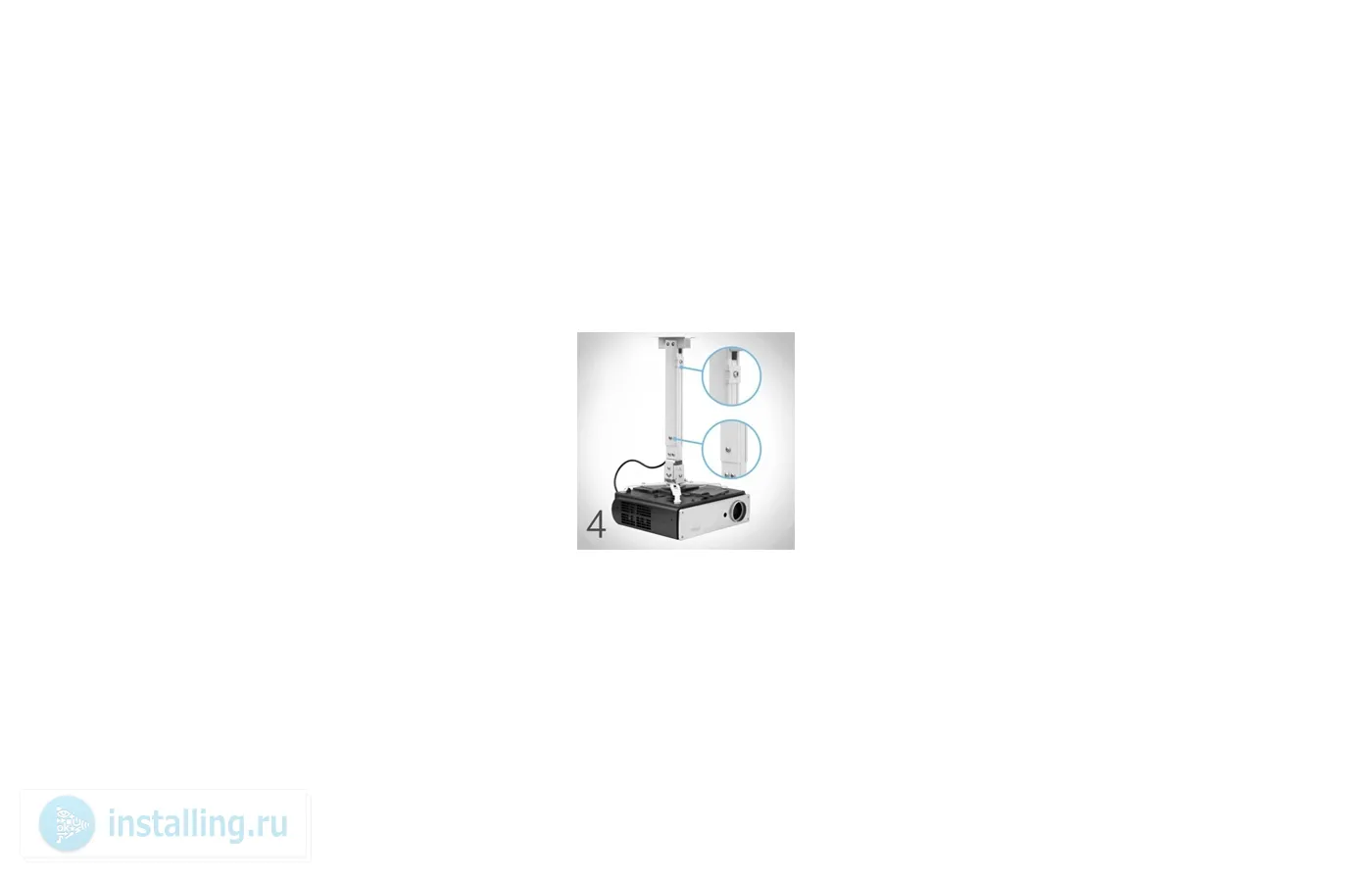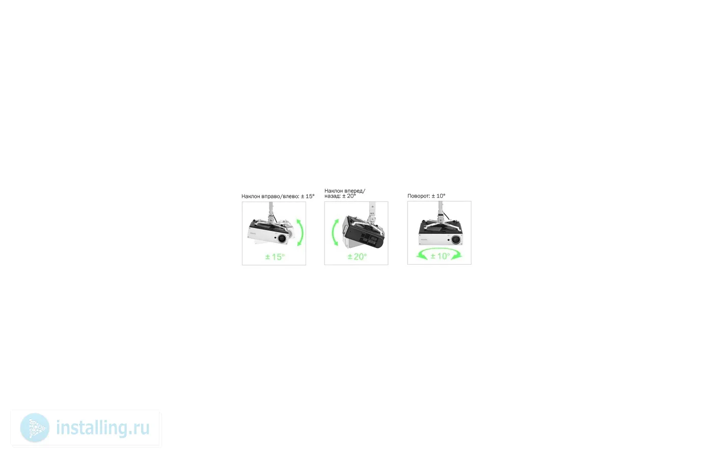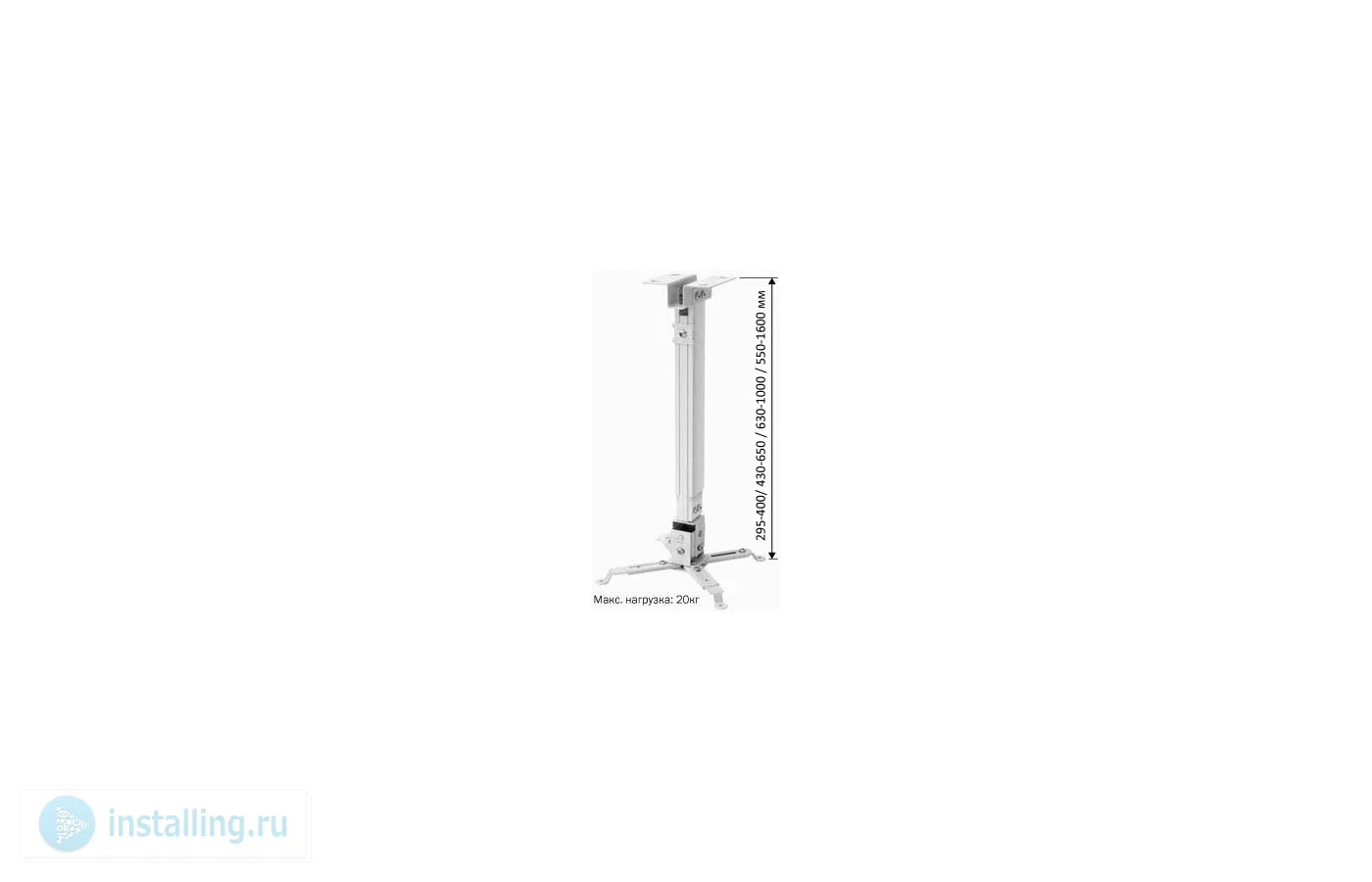 От 43 до 65 см. При подвесе без использования штанги фикс. длина 12 см. Регулировка наклона/поворота проектора в пределах+/- 15 °. Цвет - белый. Кабельный канал. До 10 кг