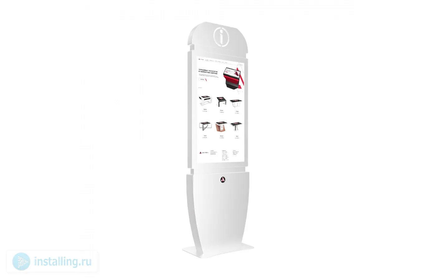 Сенсорный киоск Info 65" — это современное устройство для предоставления оперативной информации в общественных местах. Его утонченный дизайн, мультитач-система и подсвеченный символ "i" делают киоск легко узнаваемым и интуитивно понятным для пользователей.