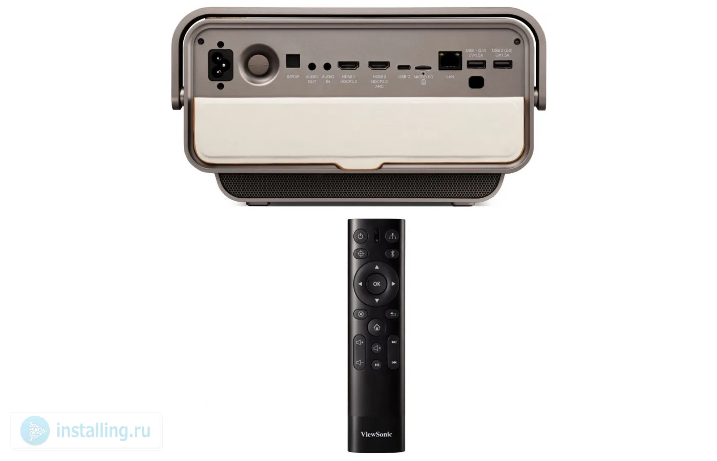 DLP, 3D, 4K UHD, LED, КФ, 3840x2160, 2400 LED Lm, TR 0.8, 2x8 Вт, 4.5 кг, 355x244x121 мм, HDMI x2, аудио mini jack, аудио HDMI ARC, RJ45, USB (A) х2, USB (C), Wi-Fi (5Gn), Bluetooth, 3000000:1, лампа до 30000 часов, 26/25 дБ, 4K HDR