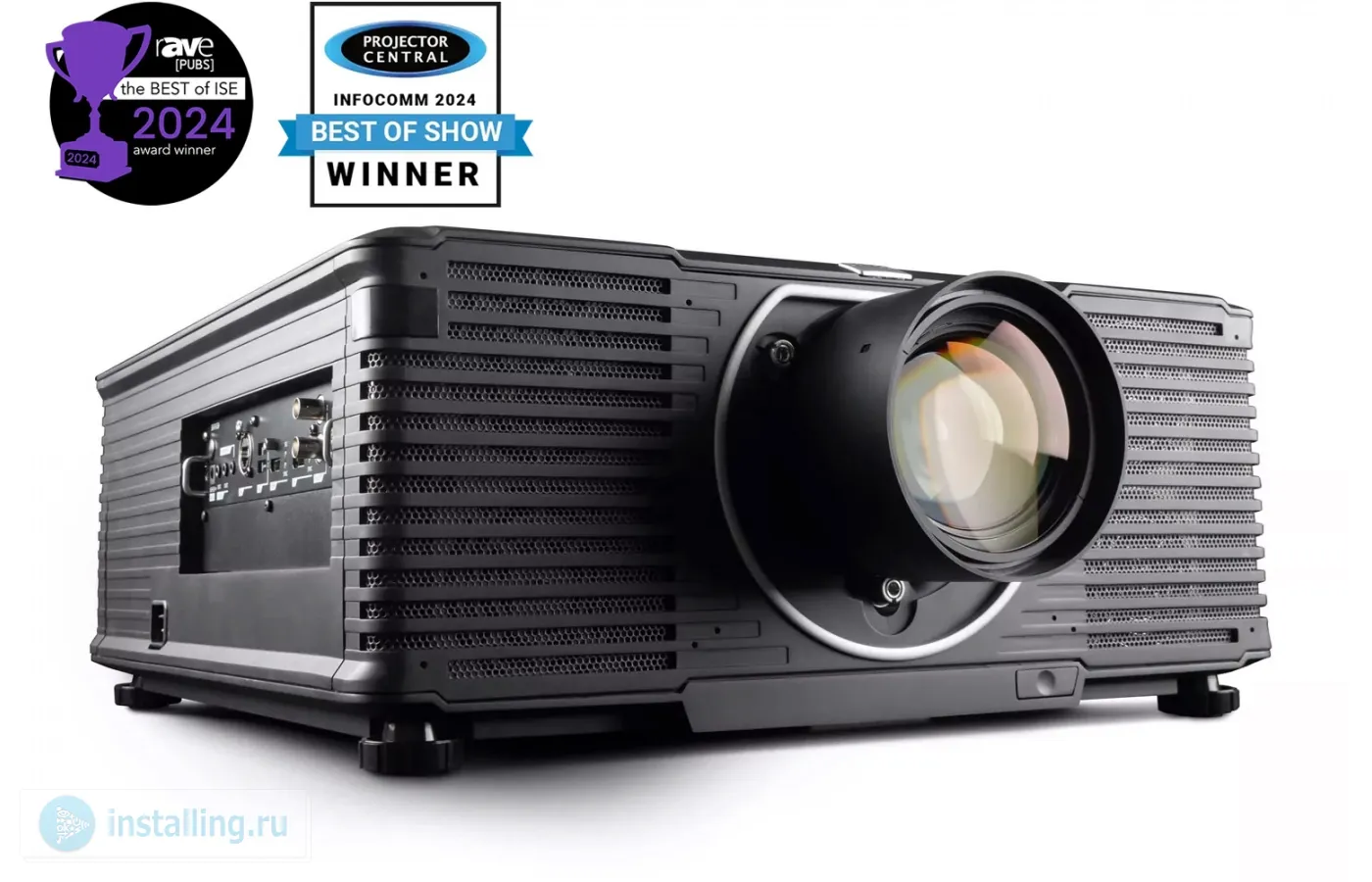 DLP, 14000 Лм, 3840x2400 (4K UHD), 1200:1, HDMI2.1 (HDCP2.2),DP1.4,RJ45,USB(5v), 12V-DC out, Trigger OUT, BNC 3D sync in/out, 40дБ, 25кг, чёрный (Part Number: R9010814/R9010814CN)