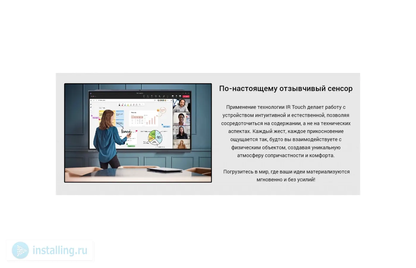| Режимы работы | Multitouch (множественное касание), Multiuser (Многопользовательский) |