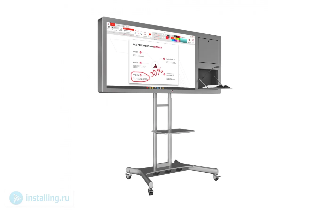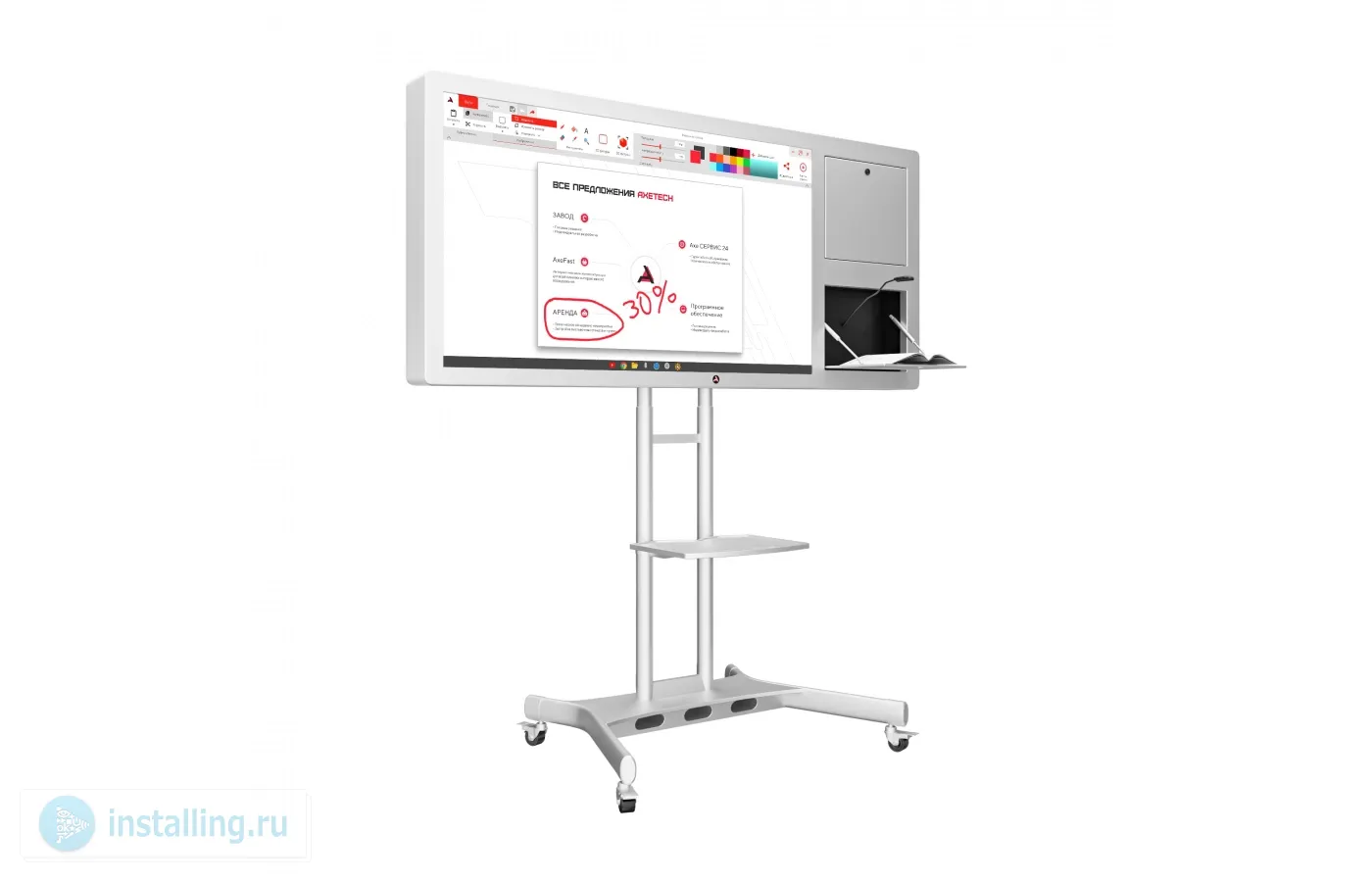 Разрешение 1920x1080 (Full HD), угол обзора 178° гарантируют высокое качество изображения на интерактивной панели, приятное для зрительного восприятия.