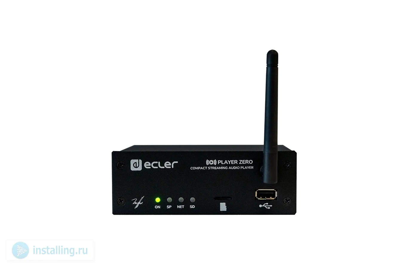 PLAYER ZERO – компактный аудиоплеер со стереовыходом, который воспроизводит музыкальное содержимое с локальных носителей (USB, microSD), интернет-потоки или использует потоковую передачу цифрового контента стандартов DLNA и AirPlay по Wi-Fi, Ethernet. Для управления с мобильных устройств используется ПО RePLAYER, со стационарных – Ecler Gallery.