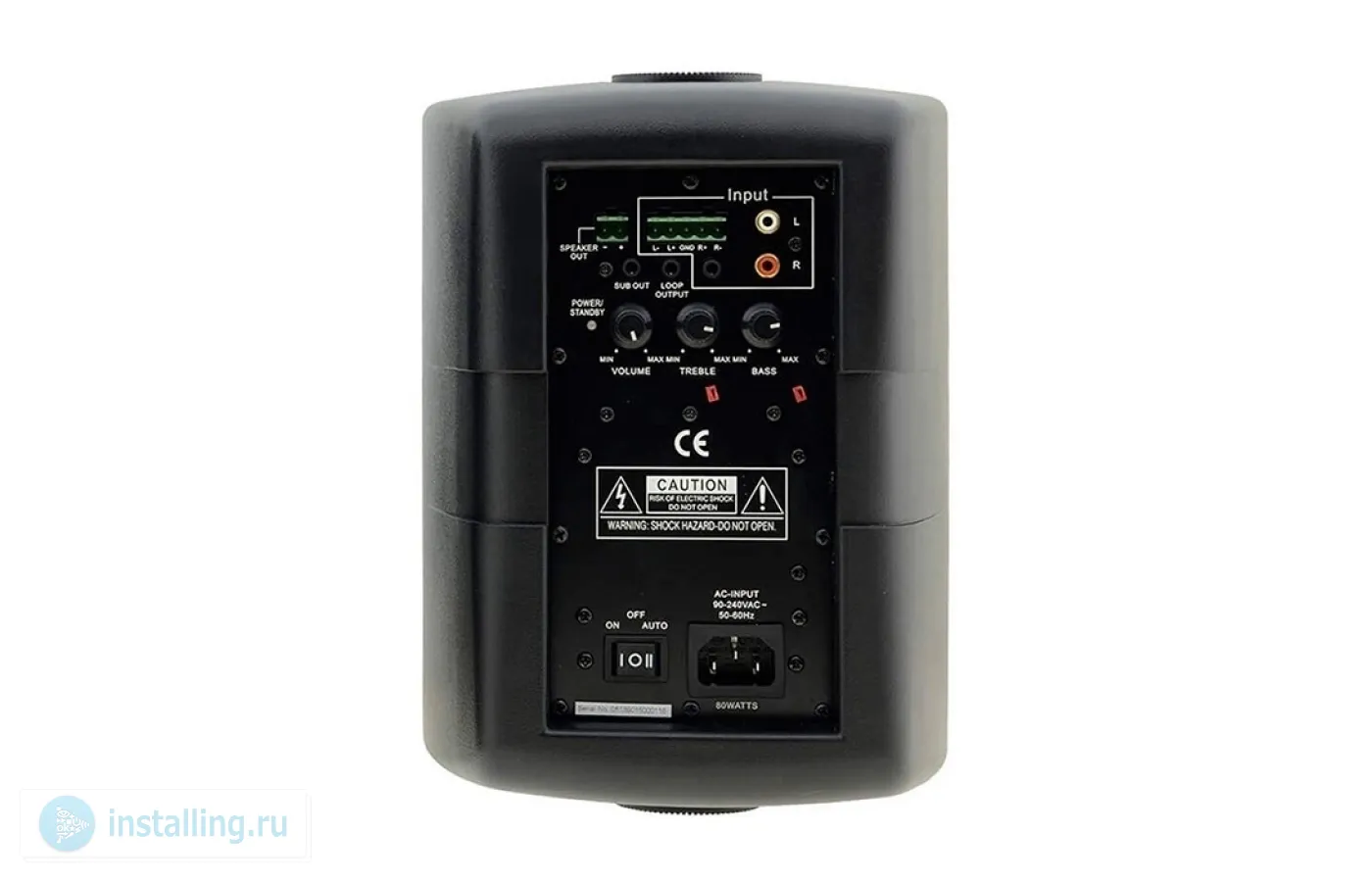 - Активная акустическая система оборудована встроенным двухканальным 30-ваттным усилителем мощности класса АВ, а также панелью коммутации со входами и выходами различных типов