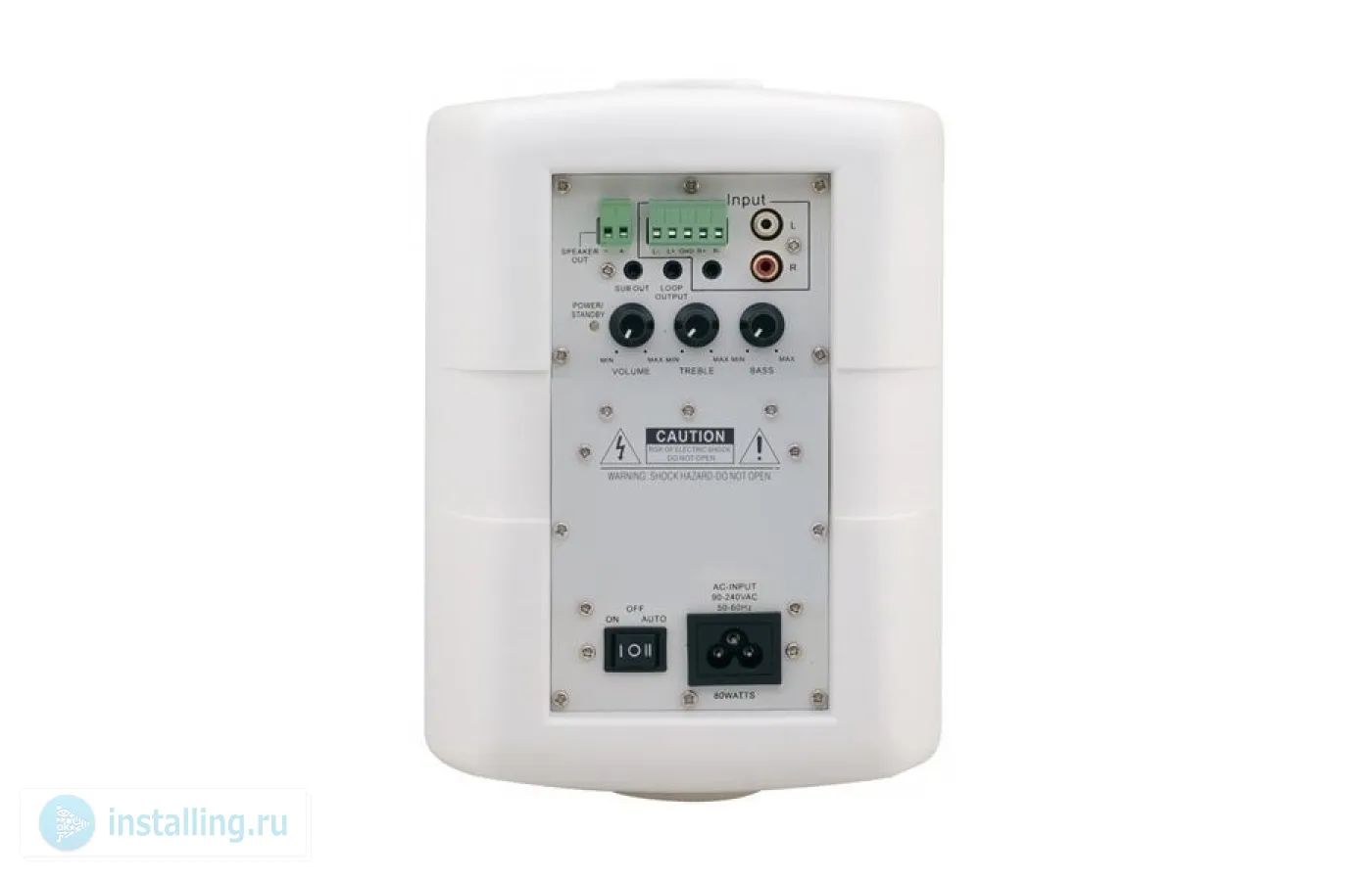 - Активная акустическая система оборудована встроенным двухканальным 30-ваттным усилителем мощности класса АВ, а также панелью коммутации со входами и выходами различных типов