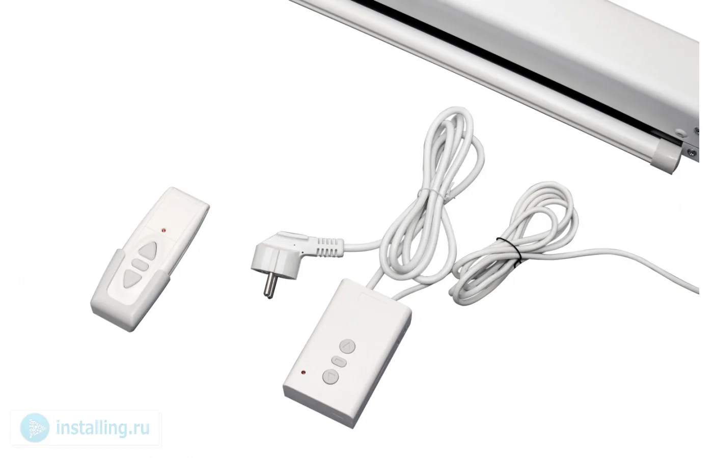 150', 16:9, размер 340*194 см, диагональ 381/150", рабочая область 332*186 см, полотно белое матовое отражающее, кайма 4 см, корпус: белый