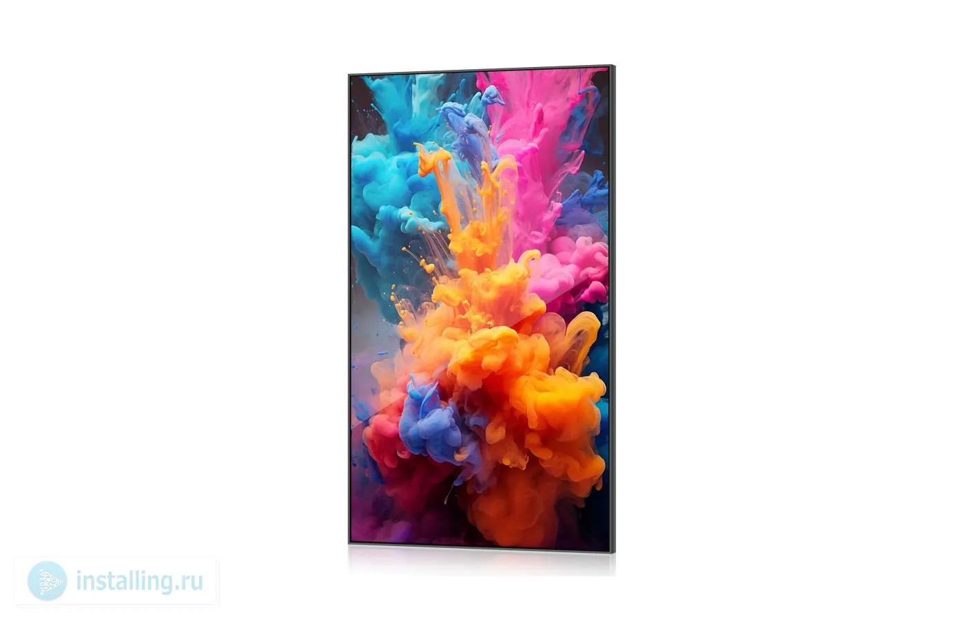 Кроме того, крепежные отверстия панелей расположены симметрично относительно центра устройства, благодаря чему его установка проста и удобна как в горизонтальной, так и в вертикальной ориентации, в том числе в составе видеостен. При этом, в отличие от телевизоров и более простых профессиональных дисплеев весь интерфейс панели можно развернуть, в зависимости от способа установки.