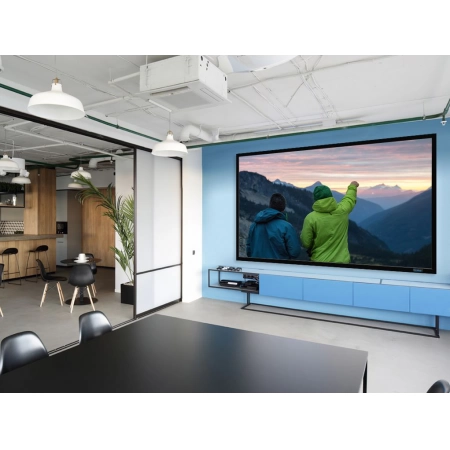 Диагональ 150", формат изображения 16:9, область просмотра 187x332 см, полотно Tiburon G4 Gray коэфф. 0.8, размер по раме 199x344 см, серия CIMA FF