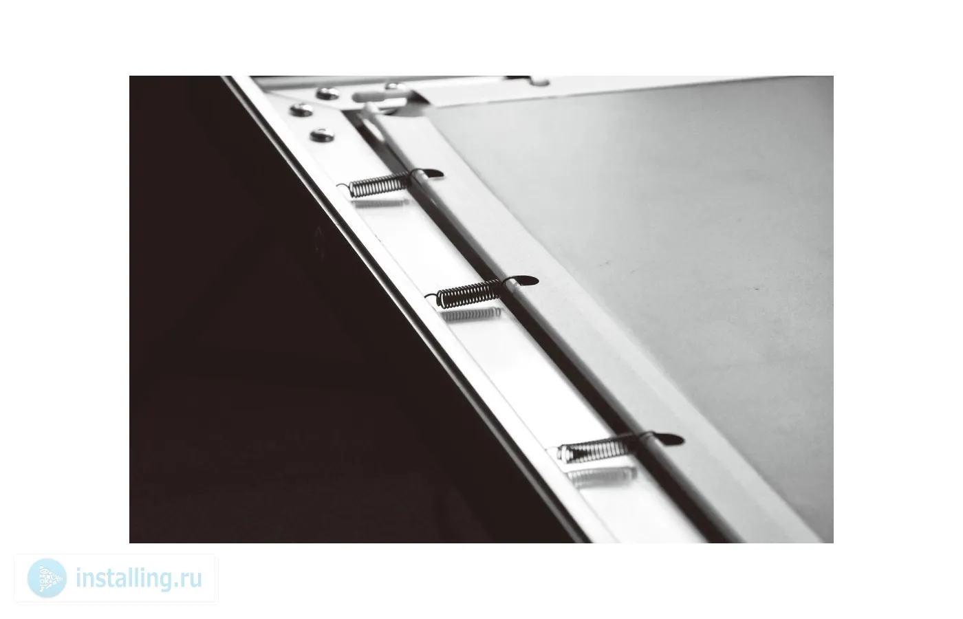 • Идеально плоское полотно с основой—материал PVC. Полотно равномерно натянуто по периметру рамки, что препятствует возникновению неровностей и волн во время эксплуатации.