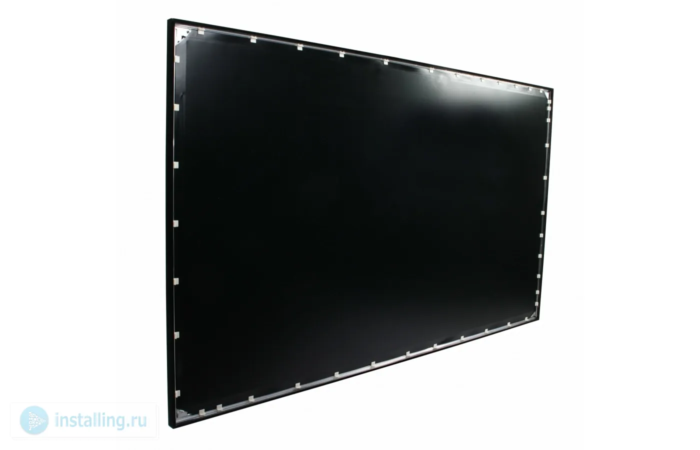 Алюминиевая рама, шириной 59 мм отделана чёрным велюром. Формат: 16:9. Диагональ: 150 дюймов (381 см). Покрытие из виниловой плёнки ПВХ серого цвета (CineGrey 5D®). Коэффициент отражения: 1.5. Поддержка видео разрешения 4K / 4K HDR. Видимое поле (ШхГ): 332,2 см х 187 см. Цвет рамы: чёрный матовый. Настенный кронштейн в комплекте.