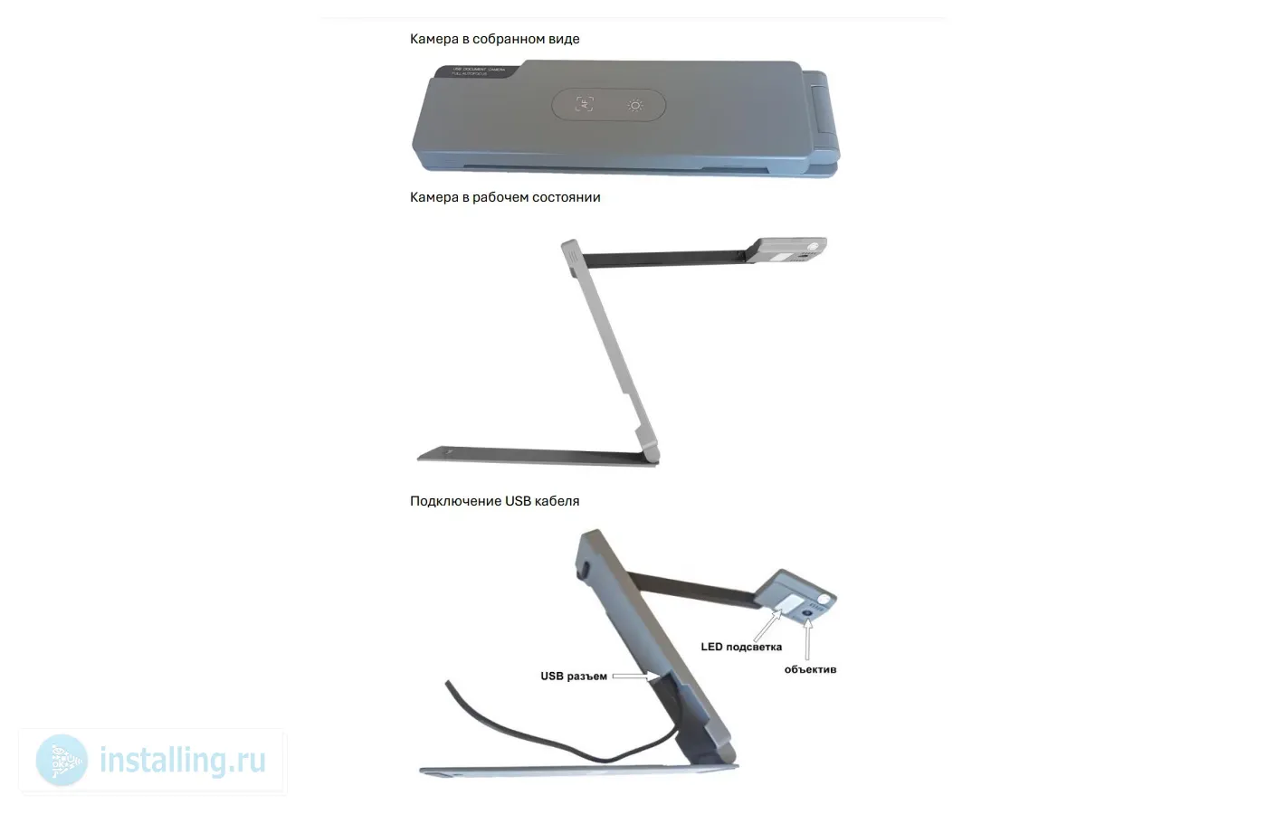 | Подключение | USB-С (камера) – USB 2.0 (ПК) |