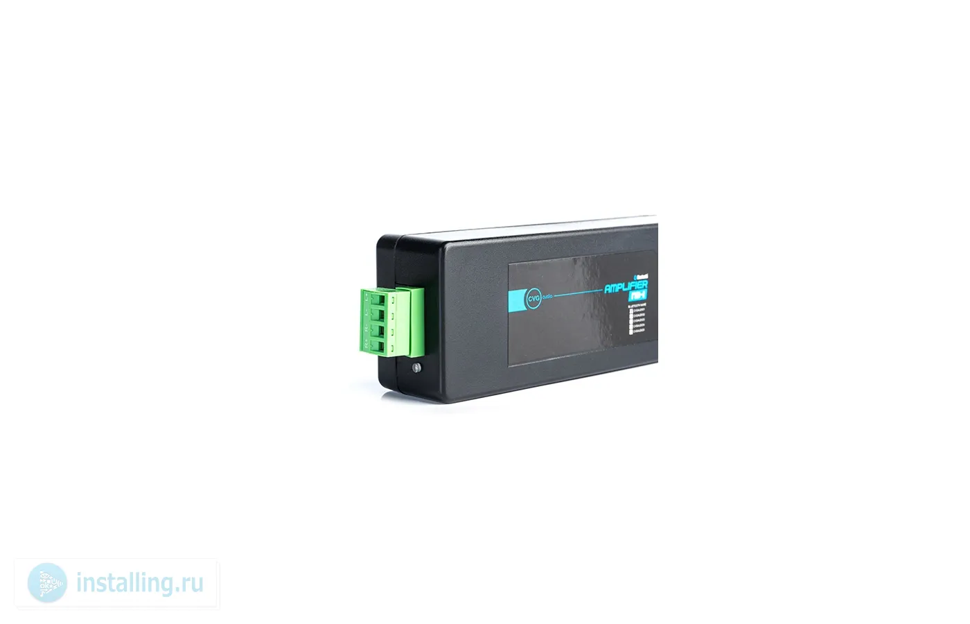 CVGaudio NB-1 - миниатюрный стереофонический двухканальный цифровой усилитель D-класса с встроенным модулем Bluetooth V4.0. Может использоваться как для скрытой установки (например за подвесным потолком), так и для внешней. На пластиковом корпусе NB-1 нет никаких органов управления, только двухцветный светодиод индицирующий режим работы усилителя. Настройка громкости и управление воспроизведением треков происходит непосредственно с подключенного по Bluetooth каналу внешнего мобильного устройства. При отсутствии активного соединения модуль Bluetooth находится в постоянном сканирование эфира и при обнаружении созданной ранее пары (или по запросу на создание новой) автоматически производит подключение к внешнему устройству, находящемуся в зоне приема. После этого активируется звукоусиливающую часть NB-1. Встроенный в усилитель Bluetooth модуль стабильно работает при максимальном удалении от передатчика на расстояние до 8-ми метров при наличии прямой видимости. Стены, перегородки, ширмы и так далее могут препятствовать распространению сигнала. Блок питания усилителя встроен в корпус. Если Вы хотите иметь возможность отключить питание 220V приходящее к усилителю Вы можете подключить его через стандартный настенный выключатель аналогичный включению света. Также при использовании усилителя NB-1, например, в санузлах или комнатах без естественного освещения - можно организовать подачу электропитания совместно с включением электрического света. Аналогово Aux подключения внешних источника сигнала в усилителе CVGaudio NB-1 не предусмотрено. Акустические системы подключаются к усилителю с помощью 4-х контактного разъема типа EuroBlock. Усилитель работает с нагрузкой от 4-х до 8-ми ohm. При нагрузке 4ohm мощность 2×15W, при нагрузке 8ohm мощность 2х10W. Отличный вариант для совместной работы с двумя встроенными в потолок акустическими системами размерностью 4”, 5” или 6” (например, CVGaudio CX408 / CX508 / CX608). В такой комбинации мощности усилителя вполне достаточно для создания комфортного музыкального фона в жилой комнате, гостиничном номере, небольшом офисе, миниатюрном кафе или парикмахерском салоне и в других подобных помещениях площадью до 20-25 квадратных метров. Bluetooth модуль усилителя не имеет шифрования паролем при создании пары, но пока ваш телефон, ноутбук или другое мобильное устройство к нему подключены, все прочие попытки соединения игнорируются. Усилители CVGaudio NB-1 выпускаются с пятью разными названиями Bluetooth сети - cvgaudio1 / cvgaudio2 / ... / cvgaudio5. Таким образом Вы можете установить в каждой комнате своих апартаментов по одному усилителю NB-1 с различной сетью и находясь в любом из помещений подключаться к локальной Bluetooth сети конкретной комнаты. Мобильные устройства на базе Android могут подключаться одновременно к двум сетям (проверено для Samsung). В силу высокого КПД свойственного цифровым усилителям D-класса, корпус устройства практически не имеет нагрева.