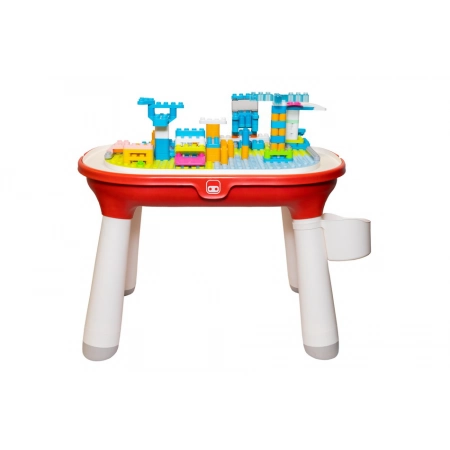 Содержит элементы стола и пластиковые детали конструктора, позволяющие составлять на столе различные игровые композиции.