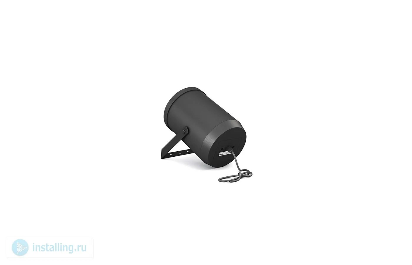 CVGAUDIO SPP6TBL – широкополосный звуковой прожектор для систем Public Address. Звуковые прожекторы рекомендуется использовать для трансляции фоновой музыки, рекламных звуковых роликов и речевых сообщений, устанавливая их на фасадах торговых комплексов, вокзалах, автостоянках, парковках, автозаправочных станциях и других общественных помещениях и территориях, где требуется направленная передача звука и высокая разборчивость транслируемой речи. CVGAUDIO SPP6T имеет влаго и пылезащитный корпус (уровень защиты – IP65), благодаря чему данная модель может быть установлена под открытым небом. Герметичный корпус выполнен из ABS пластика стойкого к воздействию влаги, солнечного света и пыли. Цвет корпуса - черный. Диффузор громкоговорителя скрыт защитной декоративной алюминиевой сеткой, окрашенной в цвет корпуса. В данной модели звукового прожектора используется громкоговоритель диаметром 6.5” (165mm) изготовленный из специальной плотной целлюлозы с водоотталкивающей пропиткой. Конструктивно широкополосный диффузор выполнен по принципу Dual-cone – по центру расположен второй диффузор в виде небольшого более узкого конуса. За счет этого ощутимо расширяется воспроизводимый SPP6TBL частотный диапазон в области высоких частот. Внутри корпуса звукового прожектора установлен качественный понижающий 100V трансформатор, который позволяет подключить данную модель в 100V режиме на одну из трех доступных мощностей – 7.5W, 15W и 30W. CVGAUDIO SSP6TBL имеет выпущенный из корпуса акустической системы через герметичный фитинг четырехжильный кабель для подключения к 100V спикерной линии. Кабельный вывод не имеет клеммной колодки или зажимов, что позволяет подключить его непосредственно к спикерной линии внутри герметичной клеммной коробки и при установке на улице надежно гидроизолировать. Для подключения на 7.5W используются проводники COM (синий) и 7.5W (зеленый), желтый и красный раздельно изолируются. Для подключения на 15W используются проводники COM (синий) и 15W (желтый), зеленый и красный раздельно изолируются. Для подключения на 30W используются проводники COM (синий) и 30W (красный), зеленый и желтый раздельно изолируются. Низкоомного подключения в звуковом прожекторе CVGAUDIO SSP6TBL не предусмотрено. В стандартный комплект поставки входит кронштейн для установки звукового прожектора на вертикальную или горизонтальную поверхности. Корпус прожектора, установленный на кронштейн, имеет возможность поворота в одной (как правило вертикальной) плоскости. Кронштейн не съемный, для удобства установки часть кронштейна, примыкающая к стене вывернута на 45 градусов, что упрощает доступ к крепежным винтам.