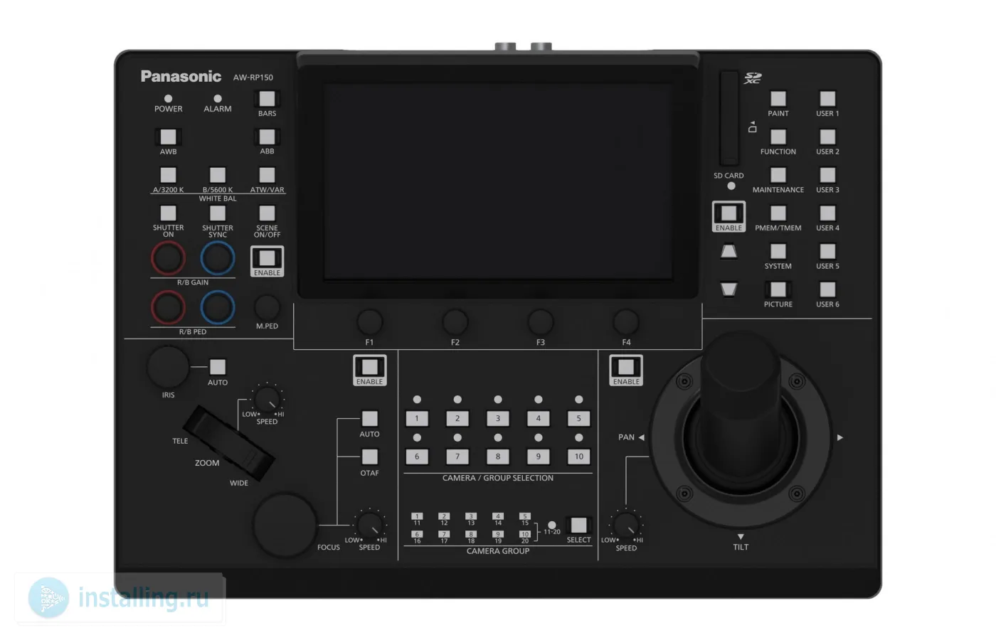 Пульт дистанционного управления камерами, который выпускается как дополнение к линейке многофункциональных профессиональных PTZ-камер Panasonic. Он имеет те же широкие функциональные возможности, что и AW-RP120 и AW-RP50, и удачно дополняет линейку, поскольку в него внесены значительные улучшения по сравнению с этими моделями, включая новый джойстик, который позволяет полноценно управлять PTZ-камерой одной рукой (с функциями панорамирования-наклона и масштабирования или фокусировки) и большой сенсорный ЖК-экран для мониторинга и установок в меню.