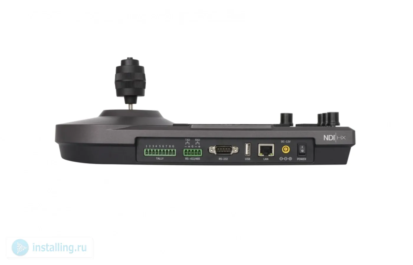 4D джостик. Просмотр в режиме реального времени. Кнопки для каждой из управляемых камер. Управление балансом белого/экспозицией/фокусом. Пуск одним нажатием. NDI|HX2. POE. Красная и белая подсветка