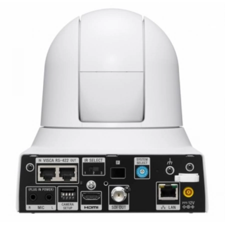 Full HD (1080/60p), 20х зум белая, с опцией 4К (требуется дополнительная лицензия для съемки в 4K), 1/2,5-дюймовый CMOS-сенсор Exmor R, f = от 4,4 мм (широкий угол) до 88,0 мм (телеположение) От f/2,0 до f/3,8, VISCA RS-422 RJ45 (вход/выход) RJ-45 (VISCA через IP), Выход HD видеосигнала3G-SDI x1, HDMI x1, потоковая передача по IP x1, Цвет Белый