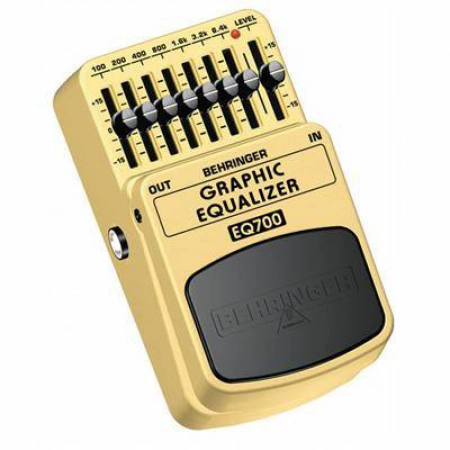 BEHRINGER EQ700 представляет собой гитарную педаль 7-полосный графический эквалайзер. Педали эффектов являются очень популярными и востребованными для гитаристов играющих разную музыку. При помощи эквалайзера гитаристы могут настроить звучание своего инструмента на свой вкус при помощи удобных ручек-регуляторов. Педаль имеет прочный корпус и качественные элементы управления. Все это гарантирует продолжительную эксплуатацию педали даже в самых экстремальных условиях туровой и гастрольной деятельности. Питание - 9В (адаптер PSU-SB или батарейка типа /"крона/"), коммутация - INPUT/OUTPUT - 1/4 Jack (mono). Размеры педали составляют 123 x 70 x 54 мм, вес - 330 гр. Педаль станет хорошим приобретением для общего и профессионального использования.
