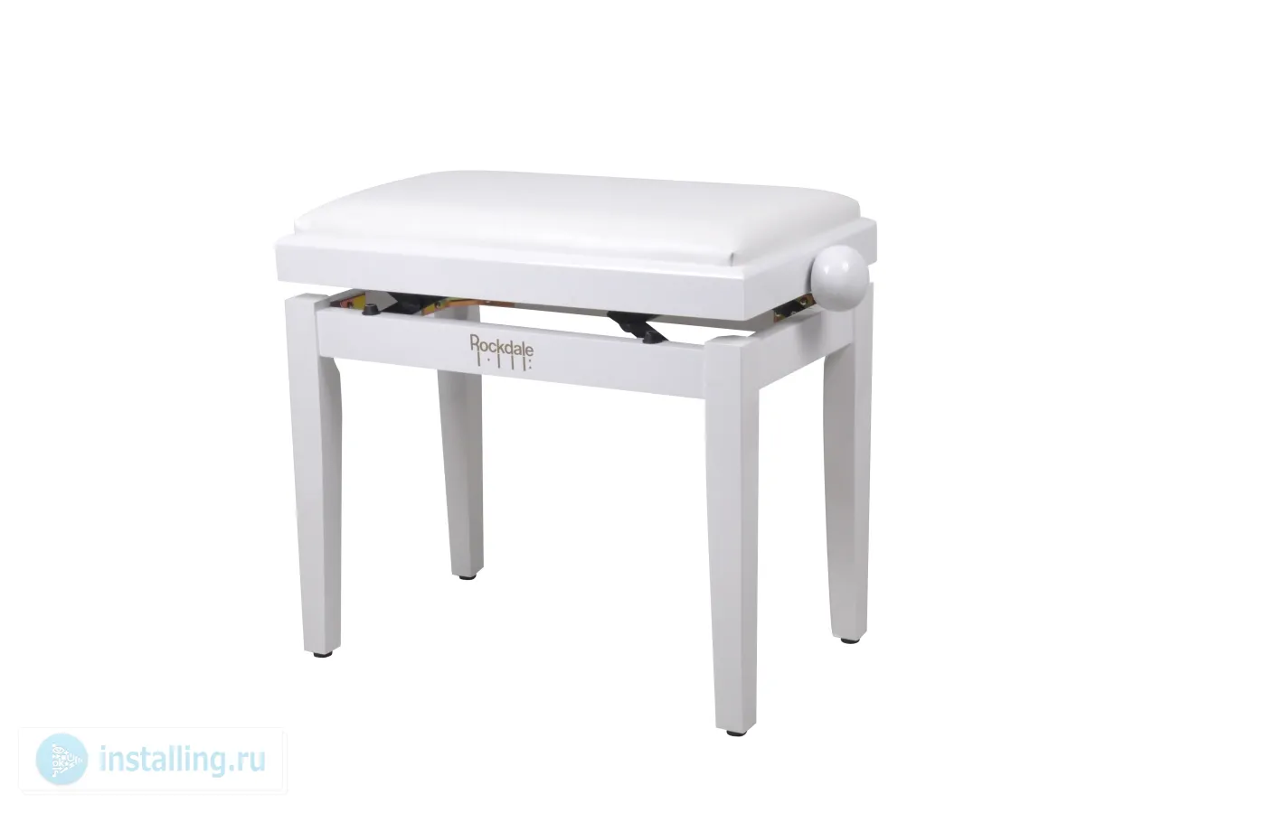 ROCKDALE 5111_W – удобная и прочная банкетка для пианиста с регулируемой высотой. Модель имеет элегантный классический внешний вид. Форма банкетки – традиционная прямоугольная, размер сиденья: 55 см х 33 см. Высоту можно настроить от 48 до 58 см, приподняв сиденье над деревянным каркасом с помощью удобного поворотного регулятора сбоку. Четыре прочные прямоугольные деревянные ножки позволяют устойчиво расположить банкетку. Сверху сиденье имеет износостойкое мягкое покрытие. Модель представлена в элегантном белом цвете.