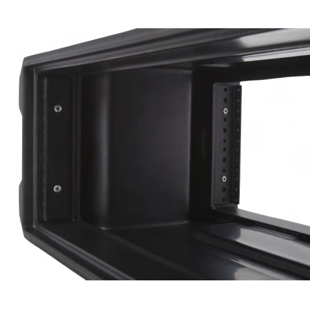 Практически неразрушаемая конструкция из формованного полиэтилена с возможностью складывания в стойку. Полноразмерные передние и задние крышки. Эргономичные боковые ручки для переноски. Встраиваемые стальные поворотные защелки. Передние и задние резьбовые рэковые пластины.