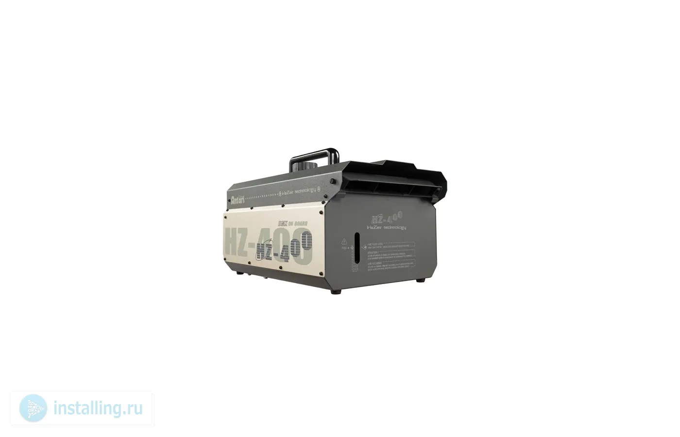 Antari HZ-400 Hazer – это прибор, создающий довольно «тонкий» эффект прозрачной «долгоживущей» дымки, которая чаще называется – туман. С одной стороны эта дымка почти не мешает видеть происходящее на сцене даже с большого расстояния, с другой стороны, свет лазеров и других световых приборов в ней прекрасно «материализуется» в объёмные фигуры. Принципиальное отличие от дым-машины состоит в том, что Hazer не имеет термоэлемента, и аэрозоль распыляется воздухом, который подаётся в бак с невоспламеняющейся жидкостью под огромным давлением при помощи мощного компрессора. HZ-400 – самый мощный прибор в этой серии. Компрессор закреплён таким образом, что не создаёт вибрации и шума. HZ-400 имеет возможность управления по DMX, а также посредством пульта дистанционного управления HC-1 или при помощи беспроводного пульта HCR-1.