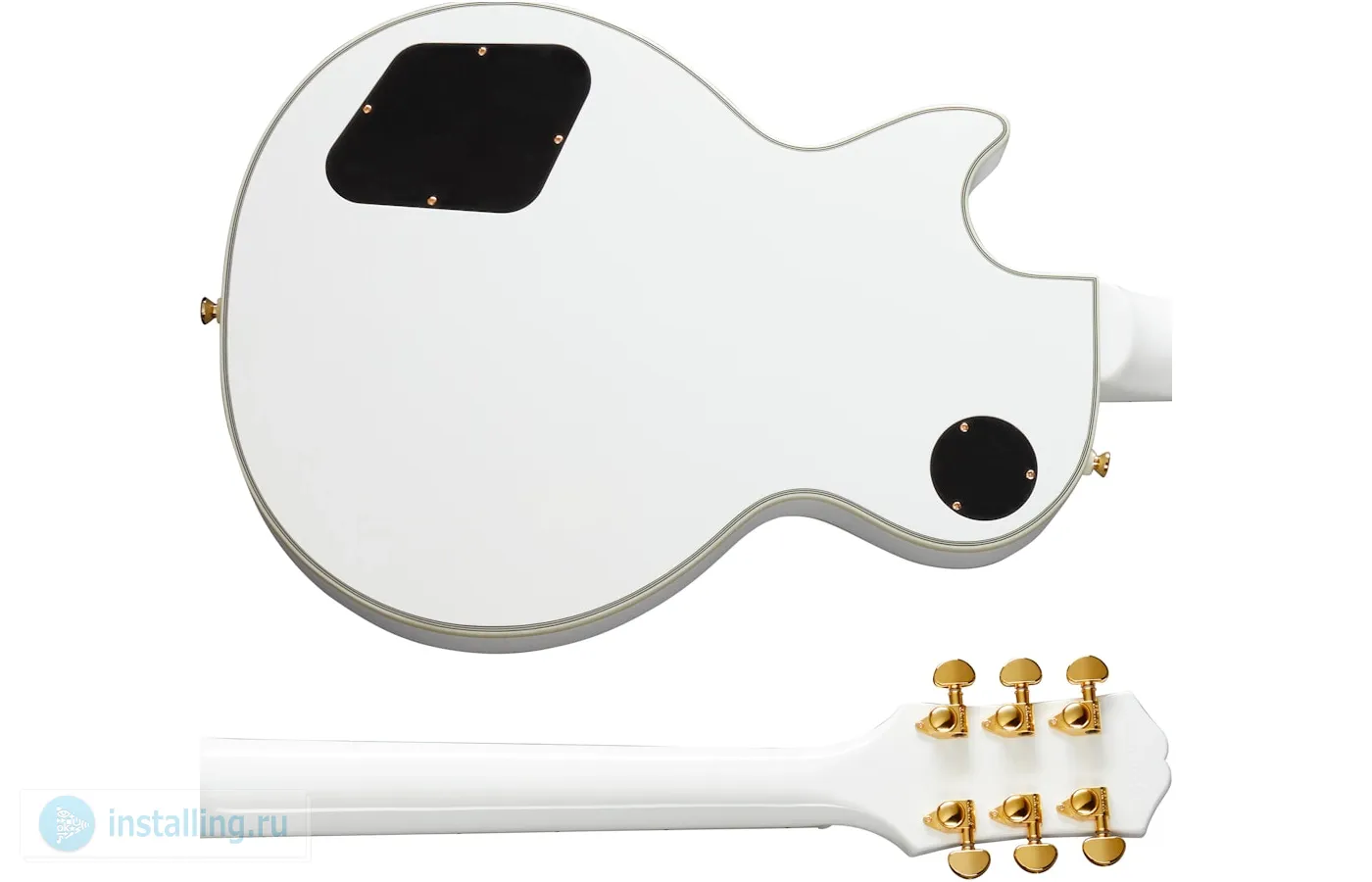 Глубоко вклеенный гриф на 22 лада с классическим тонким профилем Gibson Slim Taper имеет накладку из черного дерева эбони. Голову грифа украшают позолоченные локовые колки Grover® Rotomatics, верхний порожек производства GraphTech® выполнен из искусственной слоновой кости NuBone с графитовой смазкой. По всему периметру накладки и корпуса идет благородный белый биндинг (окантовка) и традиционная для Custom двойная обводка биндинга.