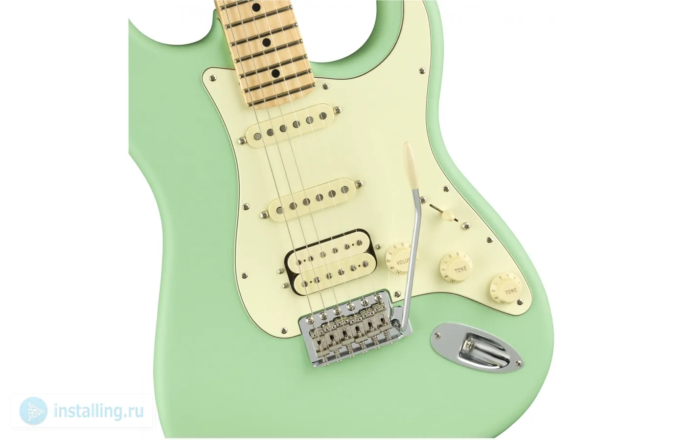 FENDER AMERICAN PERFORMER STRATOCASTER® HSS MAPLE FINGERBOARD SATIN SURF GREEN – новая модель Стратокастера, созданная в Короне, Калифорния. Это гитара с потрясающим звуком, дающая ощущения при игре, которые ожидаешь получить от настоящего, аутентичного Фендера. В то же время это современный инструмент с такими улучшениями и дополнениями как хамбакер DoubleTap в сочетании с двумя синглами Yosemite Stratocaster, делающими его еще более привлекательным. Звукосниматели Yosemite собираются вручную в Калифорнии, настраиваются с учетом особенностей каждого инструмента и позволяют добиться максимальной гибкости в настройках звучания. Для хамбакера DoubleTap у бриджа предусмотрен регулятор с потенциометром push-pull, делающий удобной регулировку звука в процессе исполнения. Корпус гитары выполнен из ольхи. Гриф профиля «Modern С» с матовым покрытием отлично подходит для любого стиля игры. Гриф оснащен кленовой накладкой радиуса 9,5 дюймов. 22 лада джамбо позволяют легко брать экспрессивные бэнды, которые способны сделать Ваше звучание уникальным. Отличительные черты инструмента – колки ClassicGear™ 18:1 в винтажном стиле и серебристый логотип в стиле семидесятых. Модель представлена в элегантном салатовом цвете.