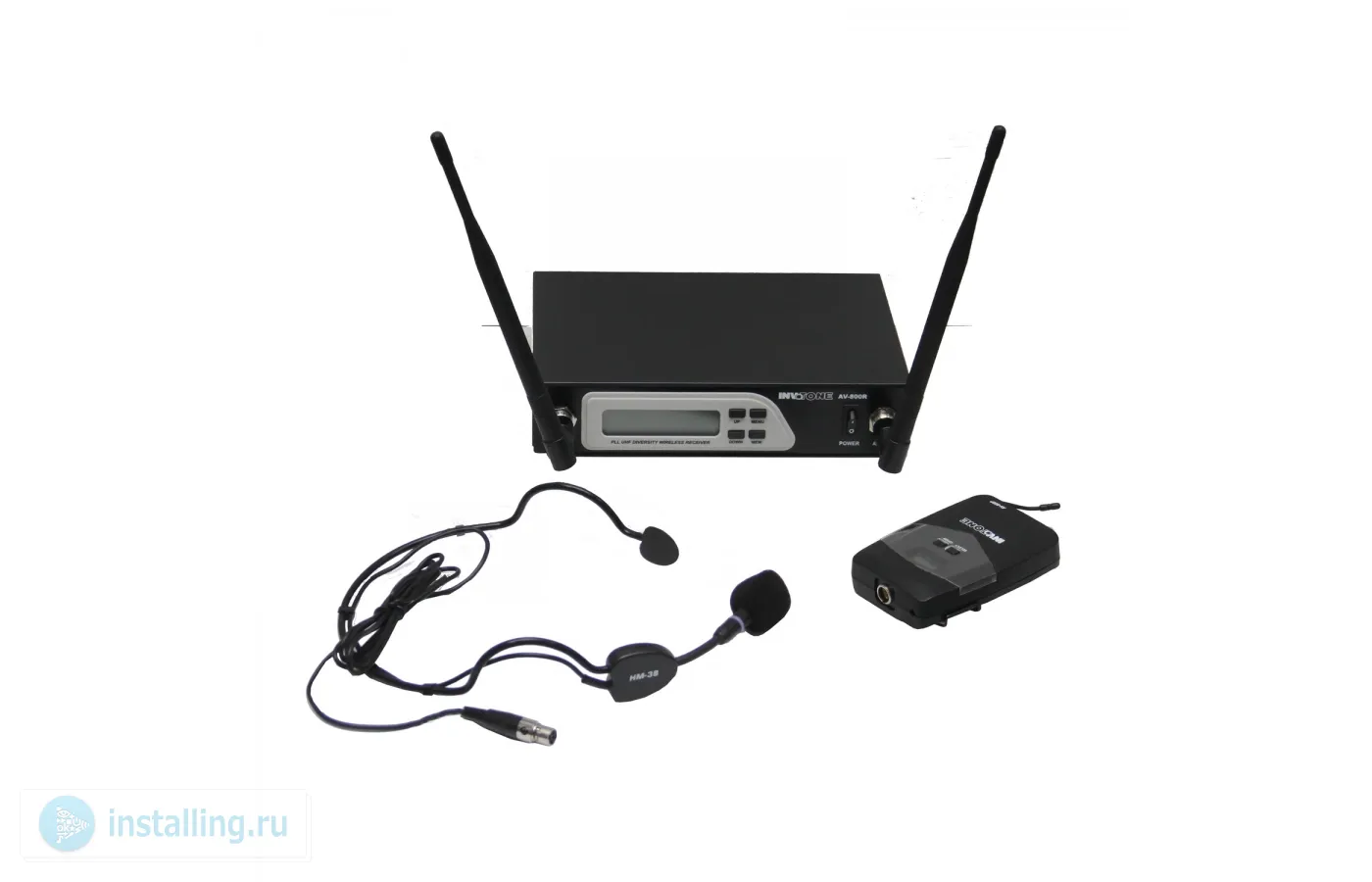 Система AV-800HS укомплектована беспроводным приемником AV-800R, поясным передатчиком AV-800P и гарнитурой HM-38.